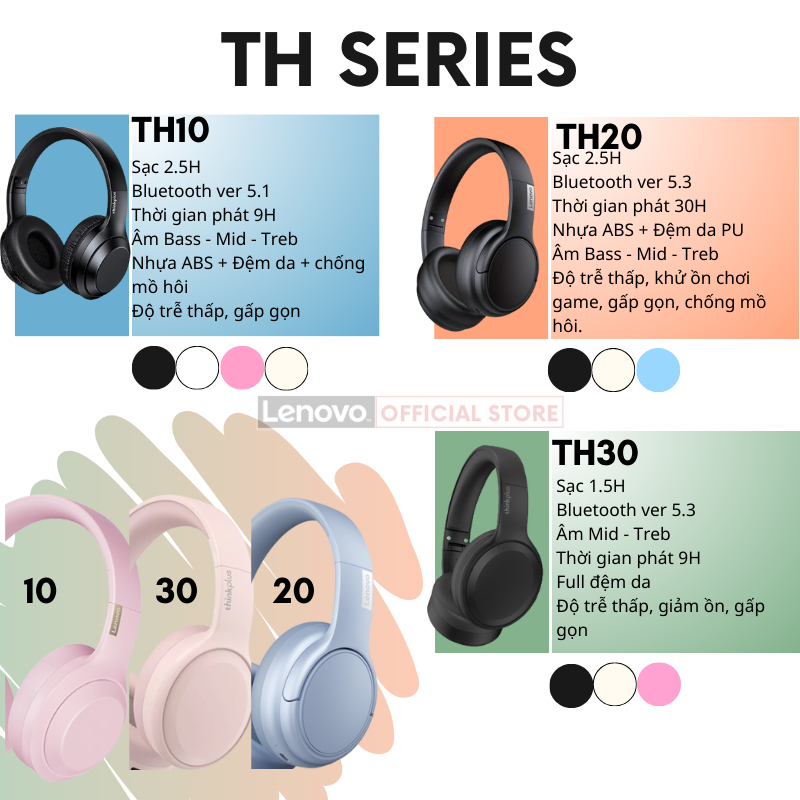 [3 MÀU] Tai nghe Bluetooth 5.3 Lenovo TH20 âm thanh HD sống động - Phù hợp chơi game