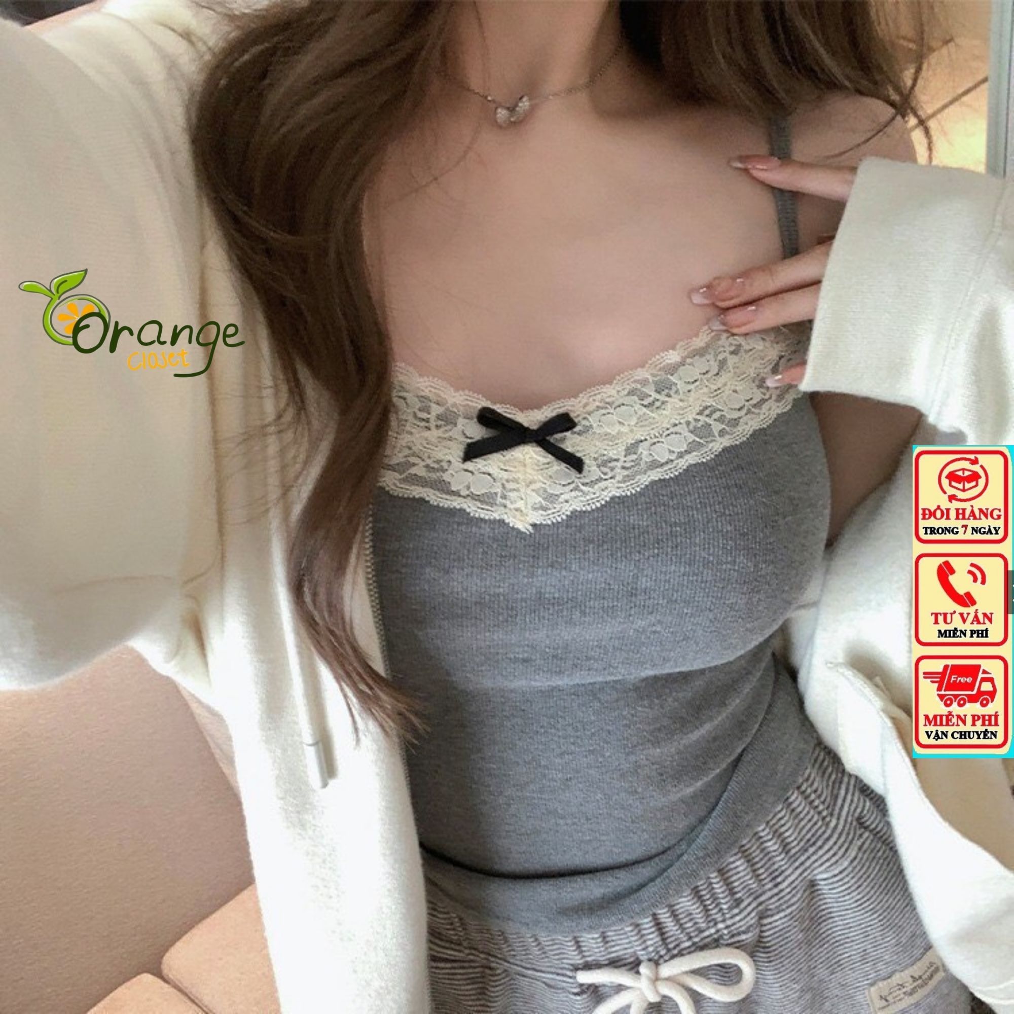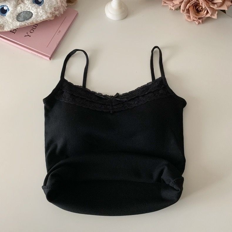 Áo 2 Dây Dệt Kim, Áo Kiểu CÓ MÚT ĐỆM Viền Ren Đính Nơ Ngực Dáng Croptop Ôm Body Vải Cotton Mềm Mại Hàn Quốc Orangecloset