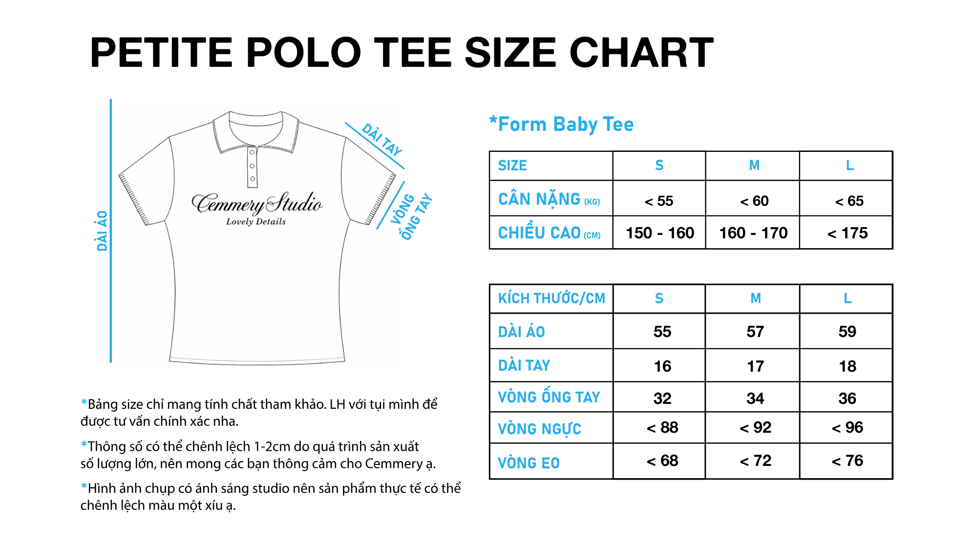 Áo Baby Polo CEMMERY Local Brand Chính Hãng Petite Polo Tee Vải Cotton 2 Chiều Cổ Thêu Viền 2 Màu