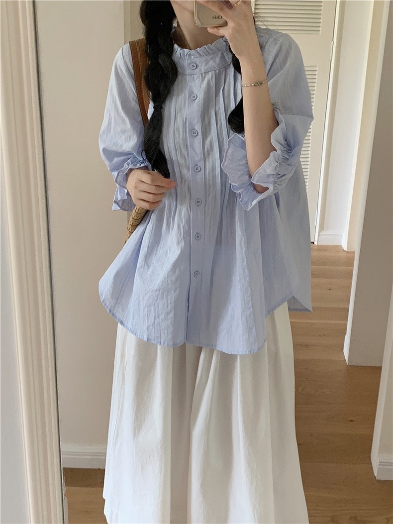 Áo babydoll kiểu nữ cổ trụ viền bèo bo tay tông màu pastel siêu xinh