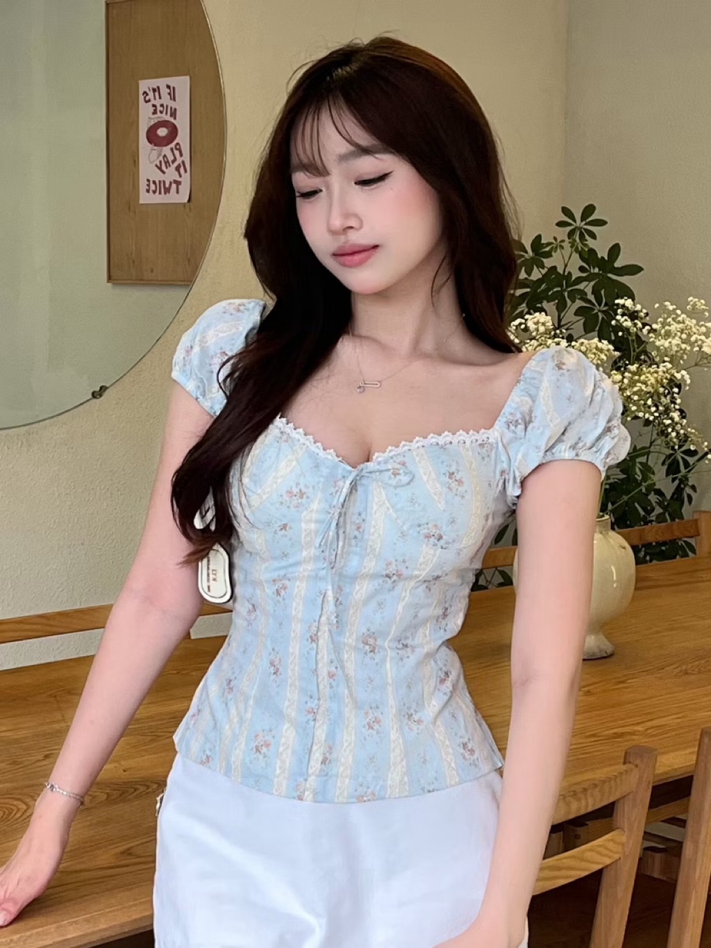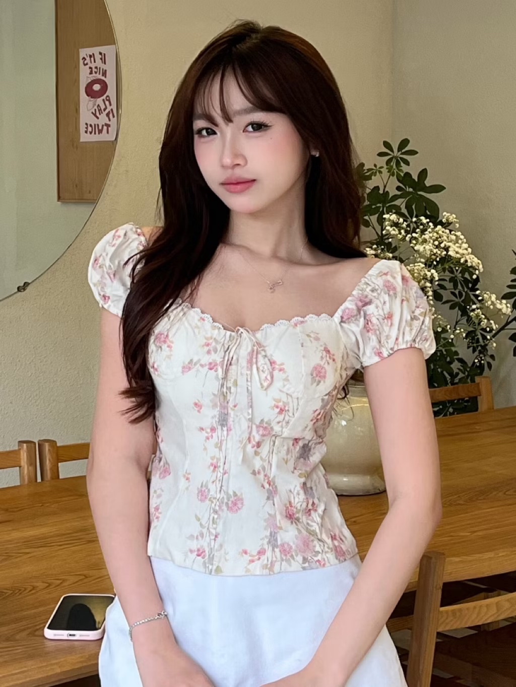 Áo Babydoll Nữ Vải Thô Linen Kiểu Tay Phồng Phối Nơ Ngực Tiểu Thư Kenco Thời Trang Nữ M678