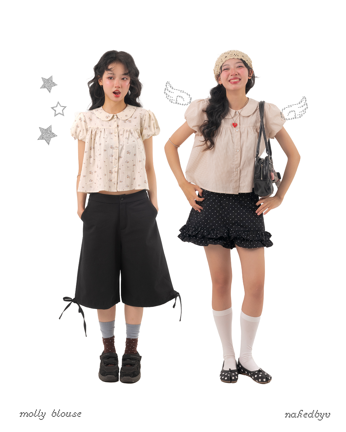Áo babydoll tay bồng NAKEDbyV áo sơ mi tay bồng hoạ tiết cotton tôn dáng MOLLY SHIRT