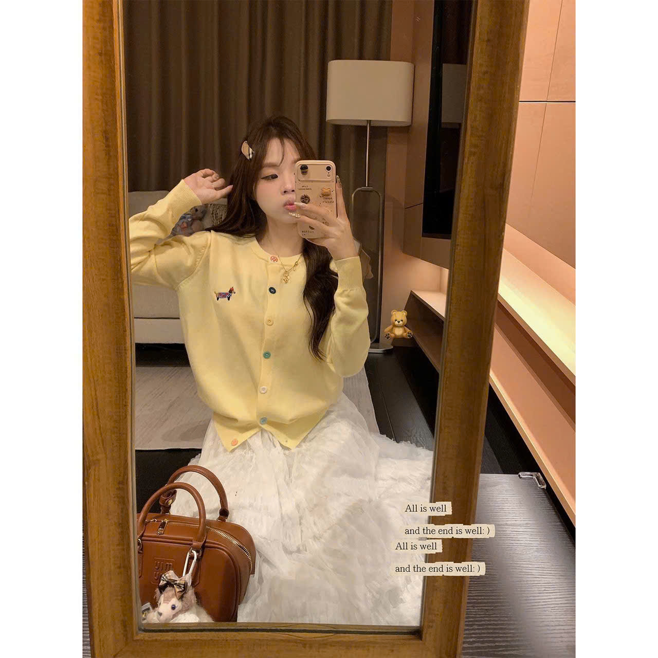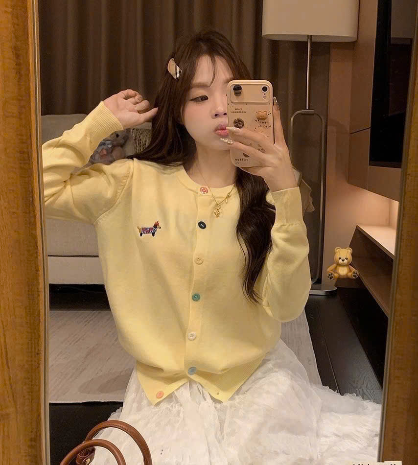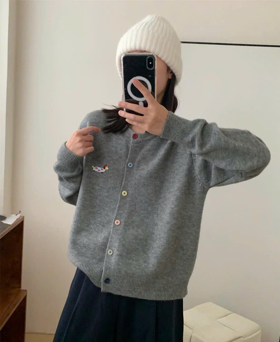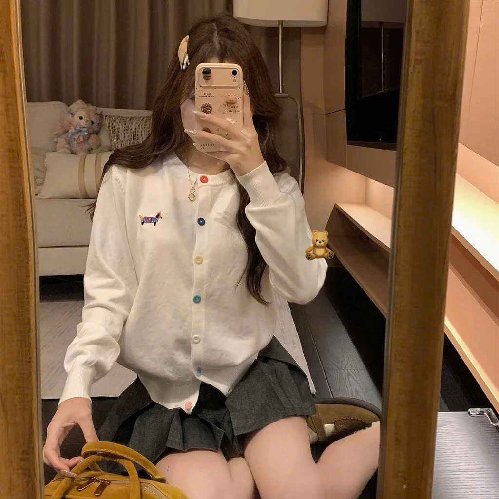 Áo Cadigan Cài Khuy 7 Màu, Áo Khoác Len Mỏng Tay Dài Cổ Tròn Thêu Chó Corgi Nổi Trước Ngực Dễ Thương Hàng Qccc Shopquacam