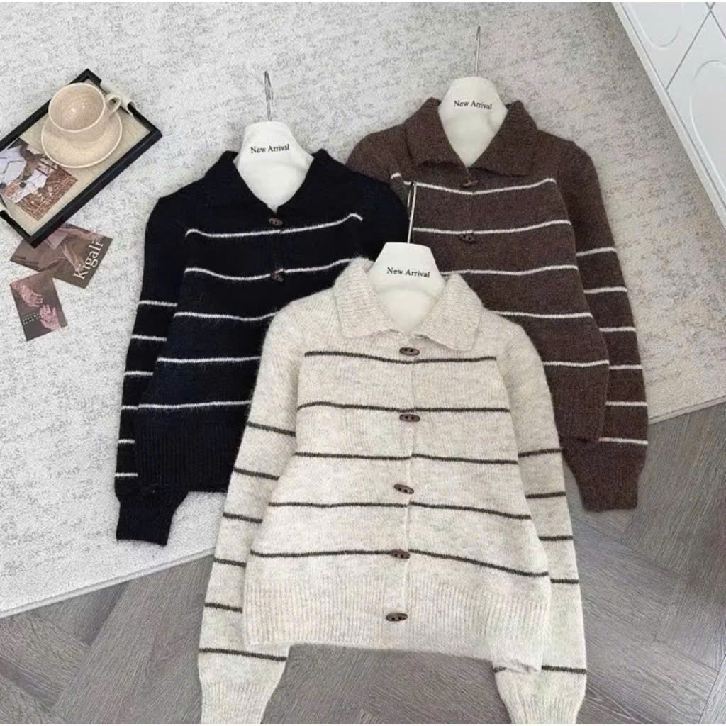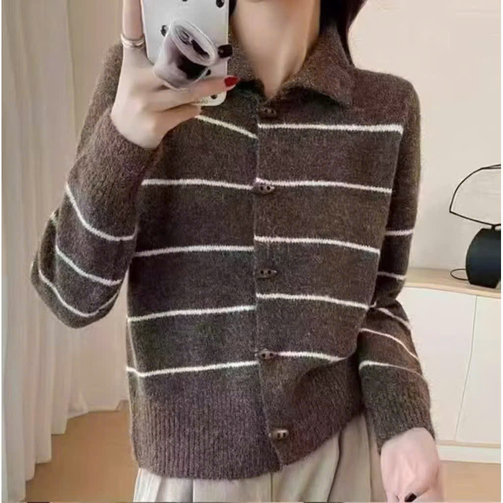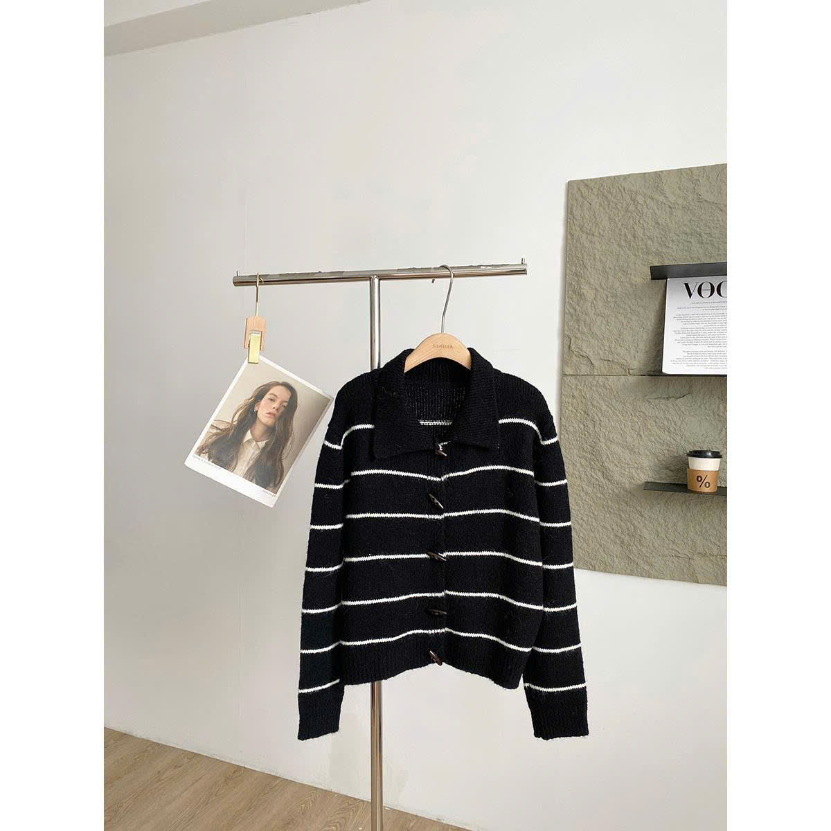 Áo Cadigan Len Lông Thỏ, Áo Len Dệt Kim Phối Sọc Ngang Kèm Hàng Cúc Sừng Dáng Dài Hàng Qccc Phù Hợp Với Mọi Lứa Tuổi