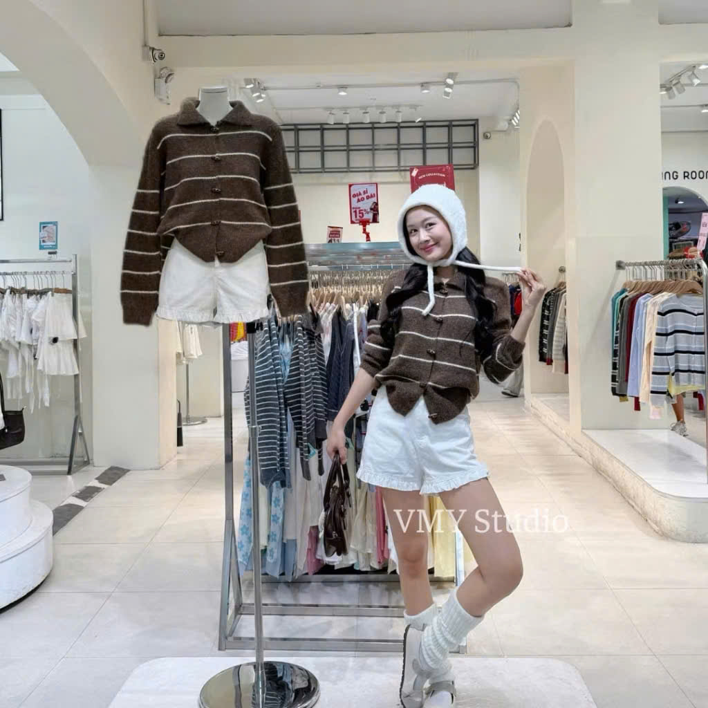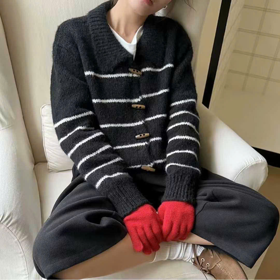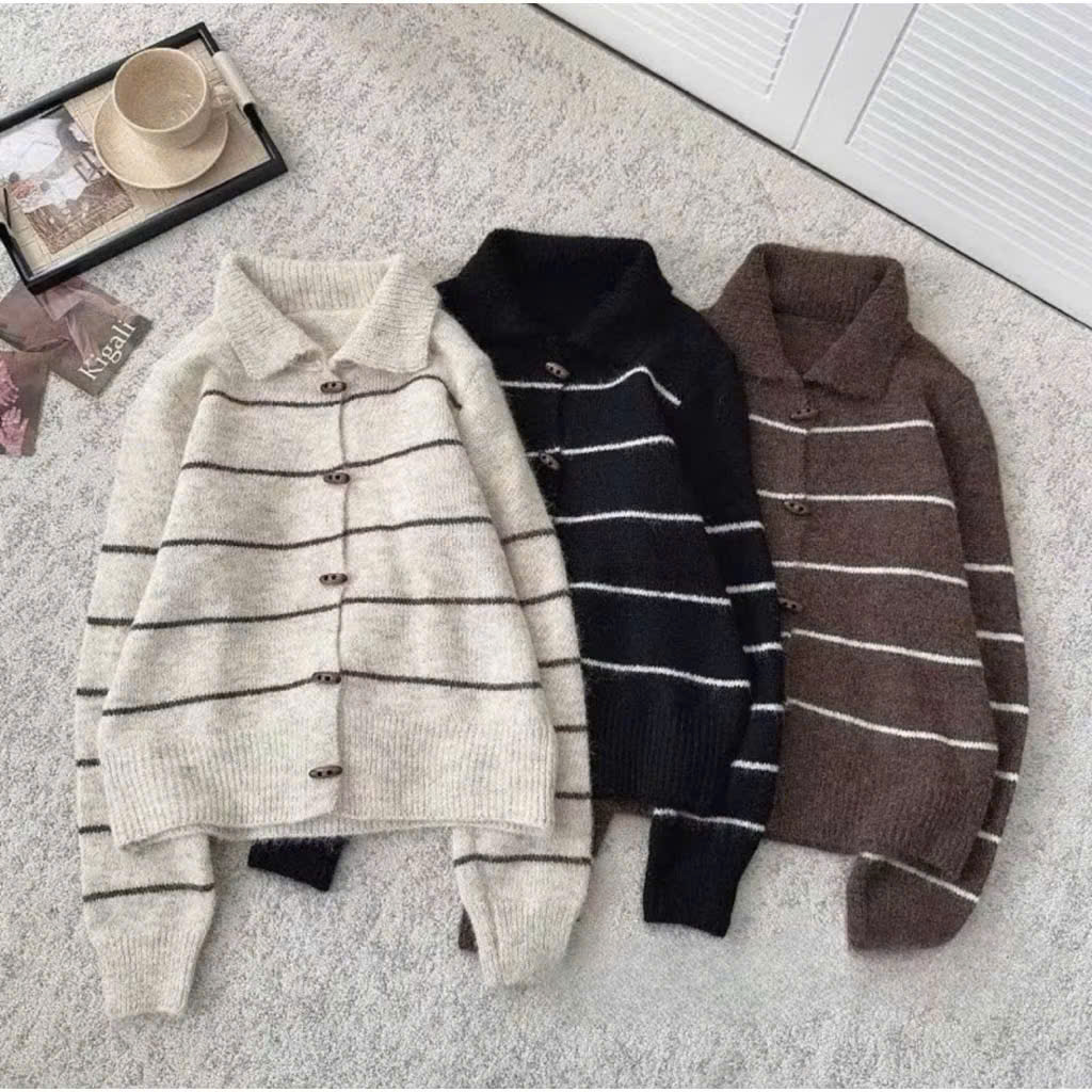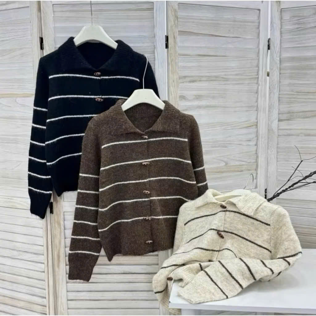 Áo Cadigan Len Lông Thỏ, Áo Len Dệt Kim Phối Sọc Ngang Kèm Hàng Cúc Sừng Dáng Dài Hàng Qccc Phù Hợp Với Mọi Lứa Tuổi