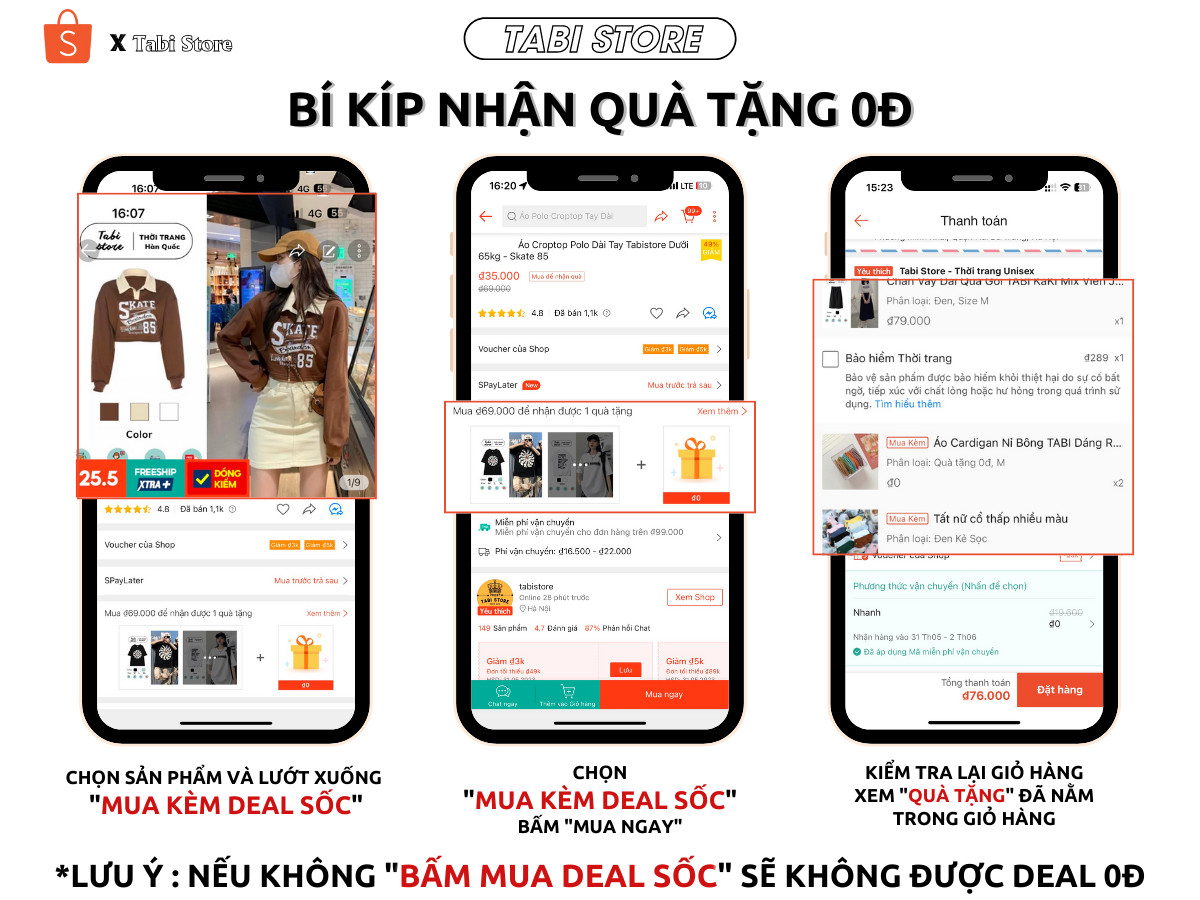 3. Trường hợp shop gửi thiếu sản phẩm: vui lòng giữ nguyên bao bì,tem mác, các cậu nhớ gửi kèm video quay khi unbox đơn hàng. Nếu bạn thấy sản phẩm chất lượng đúng mô tả và hài lòng với đơn hàng, hãy cho Tabi biết nha!