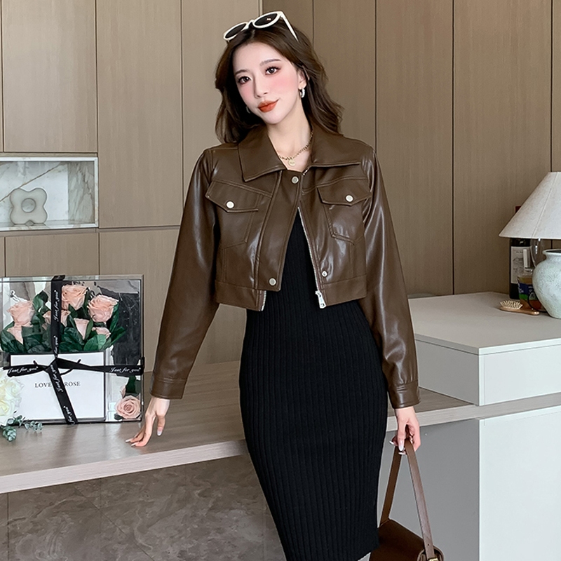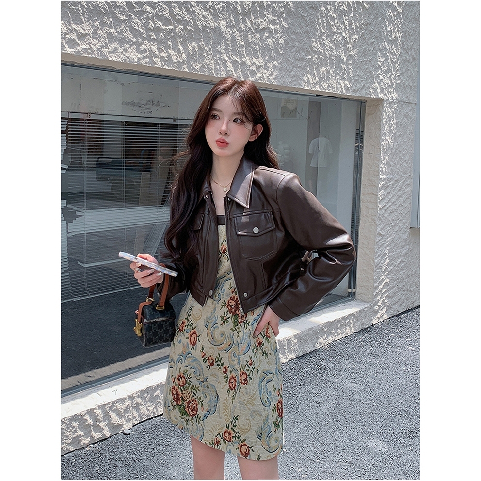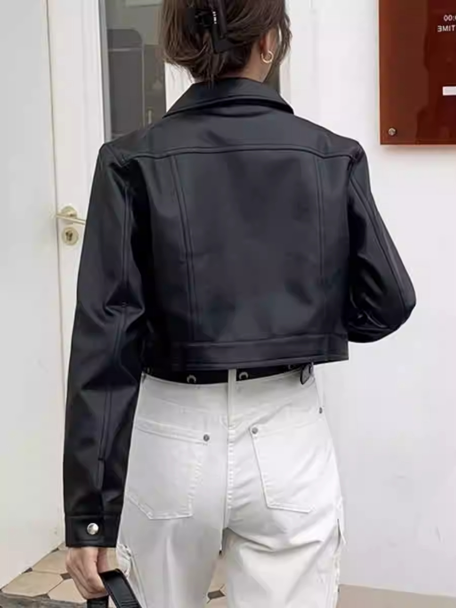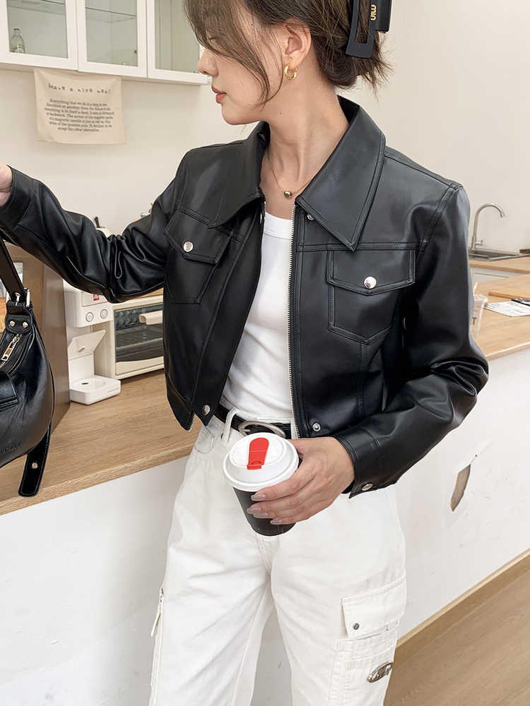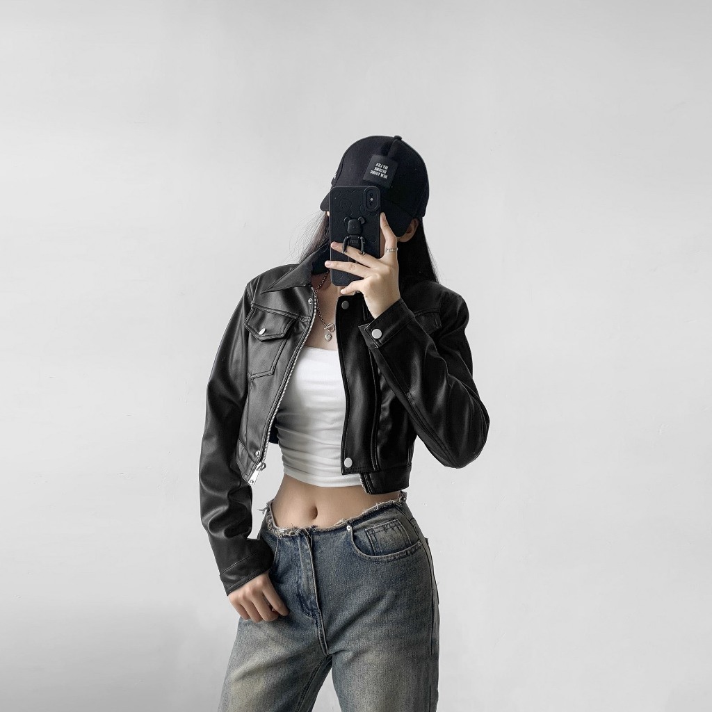 Áo khoác da Forgirl áo da nữ phối khóa kiểu dáng croptop cá tính phong cách Hàn Quốc T012