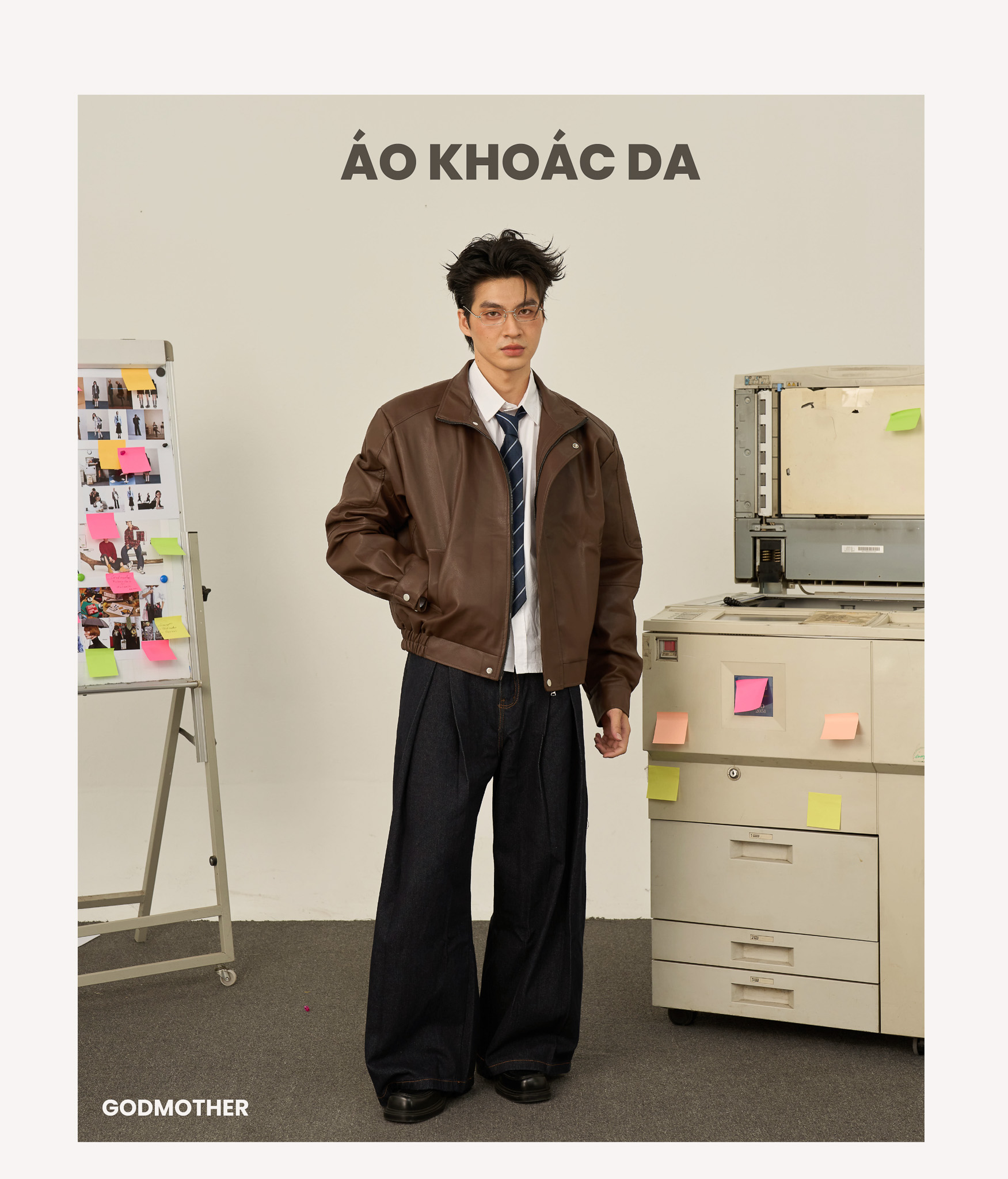 Áo Khoác Da GODMOTHER Khoác Da Cao Cấp Dài Tay Cổ Bẻ Leather Jacket