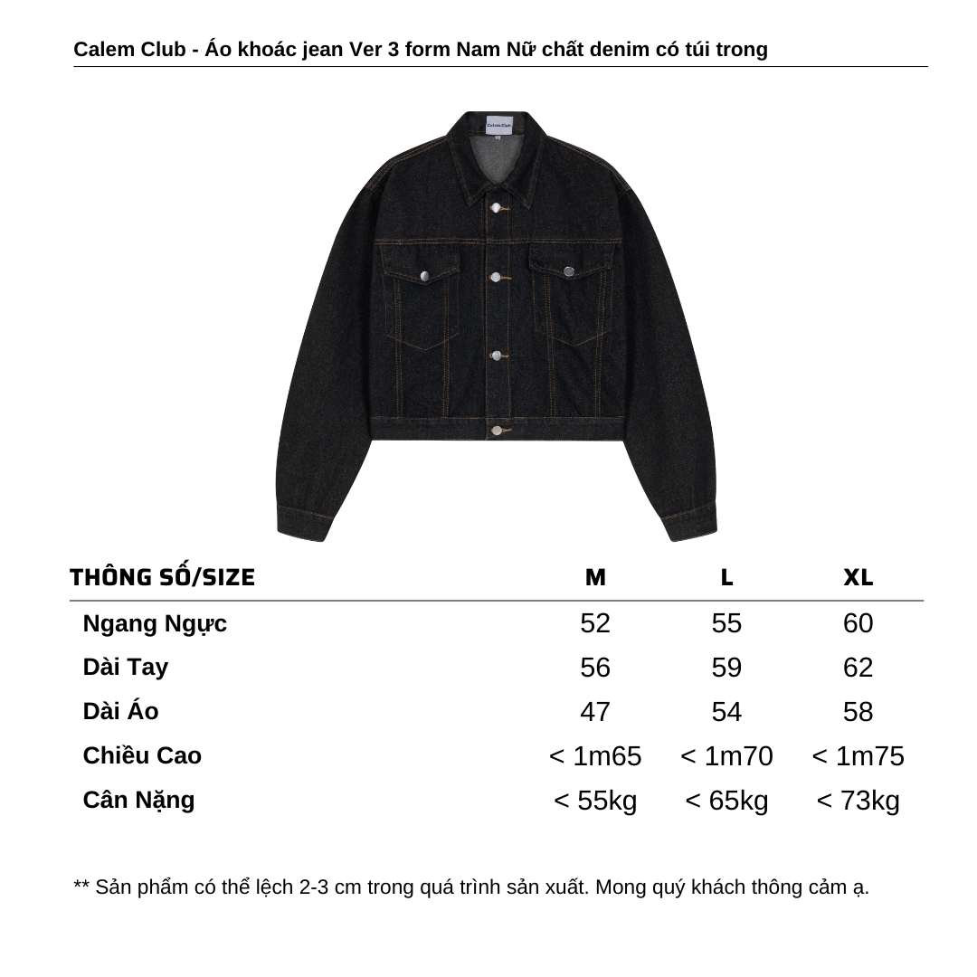 Áo khoác jean Ver 3 Calem.Club form Nam Nữ chất denim có túi trong phong cách trẻ trung năng động