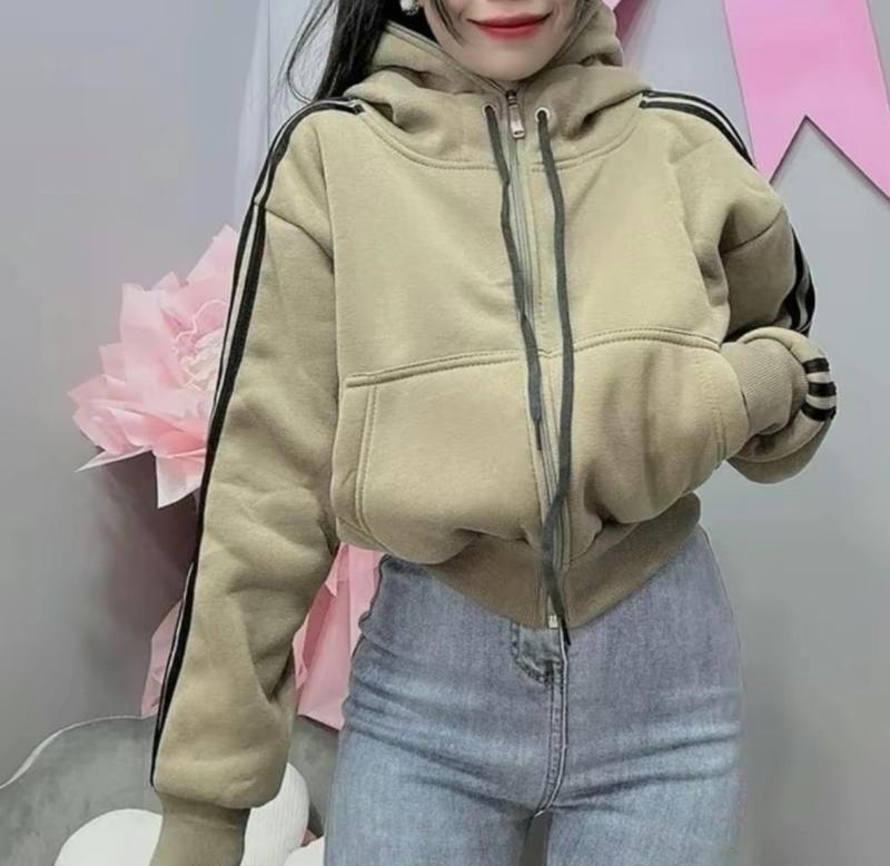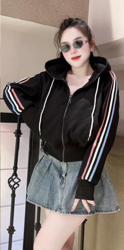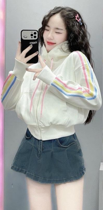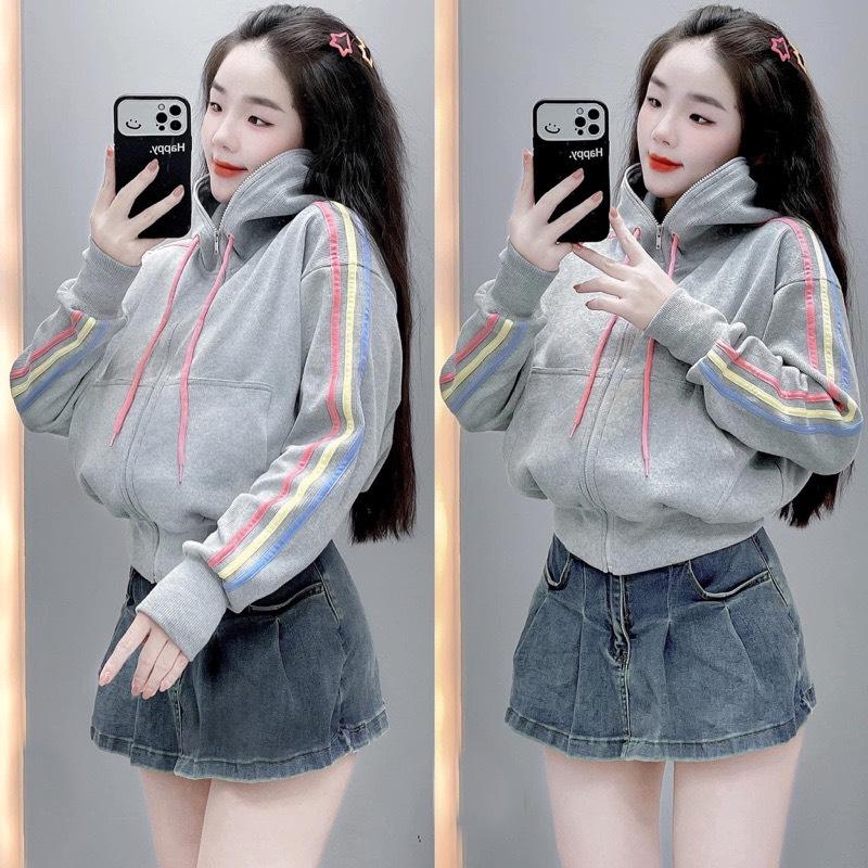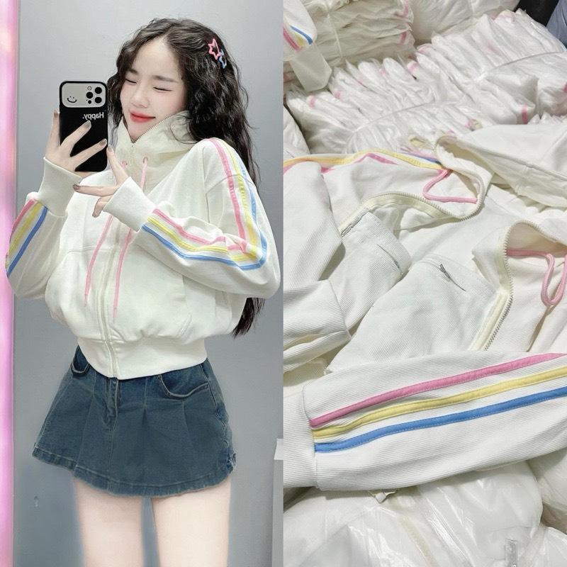 Áo Khoác Nỉ Cổ Cao CÓ NÓN 3 Sọc Viền Màu CẦU VÒNG ( CÓ TÚI TRONG )