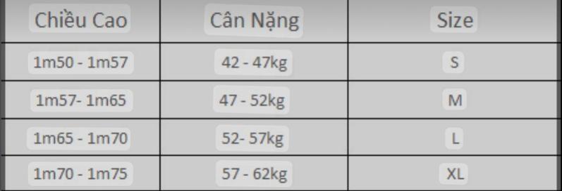 l Size S: Từ 40KG Đến 47KG CAO 1m50 - 1m57 ( Số Tham Khảo Nhé Các Bạn ).
