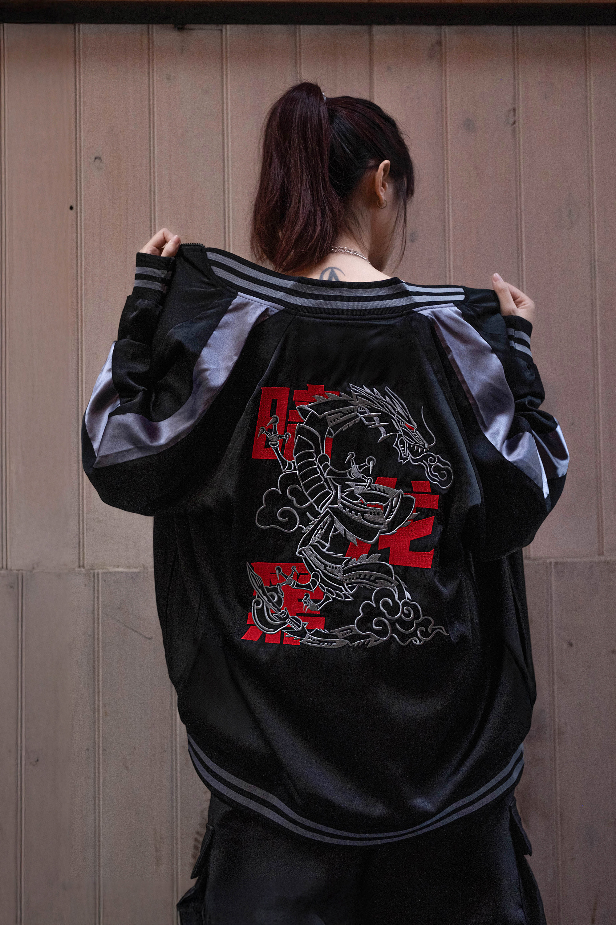 Áo Khoác Sukajan Nam Nữ Unisex Oversized Vải Phi Hình Thêu Ryuga