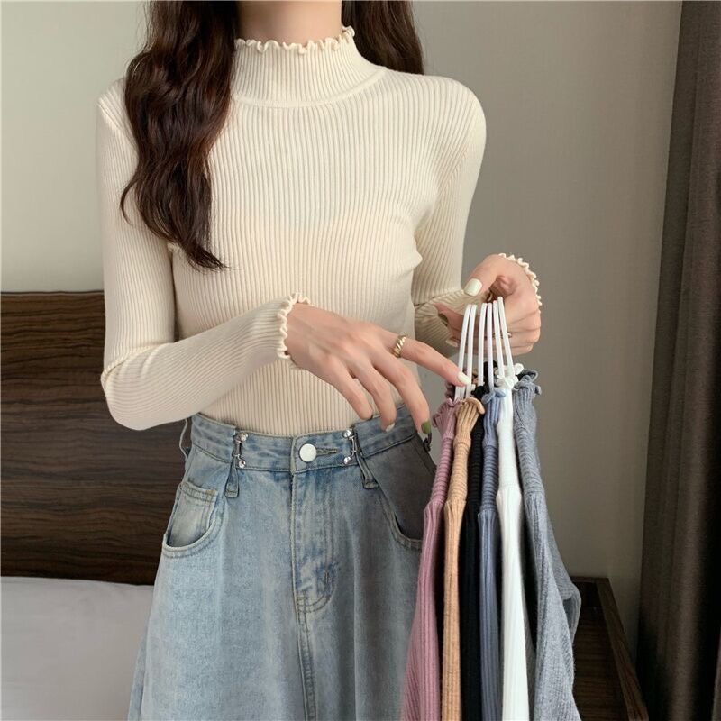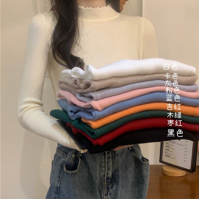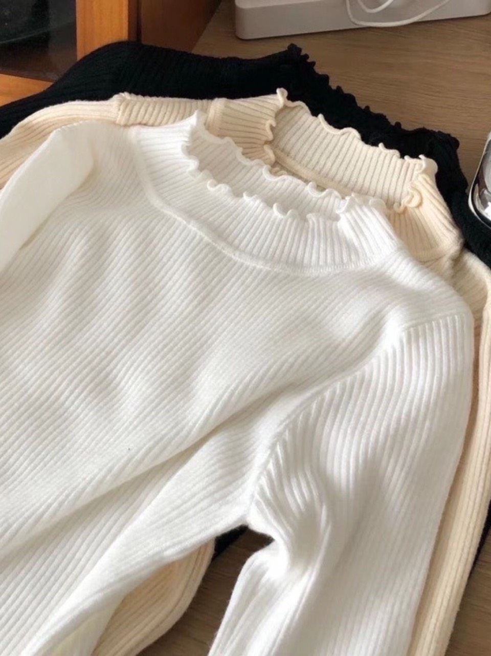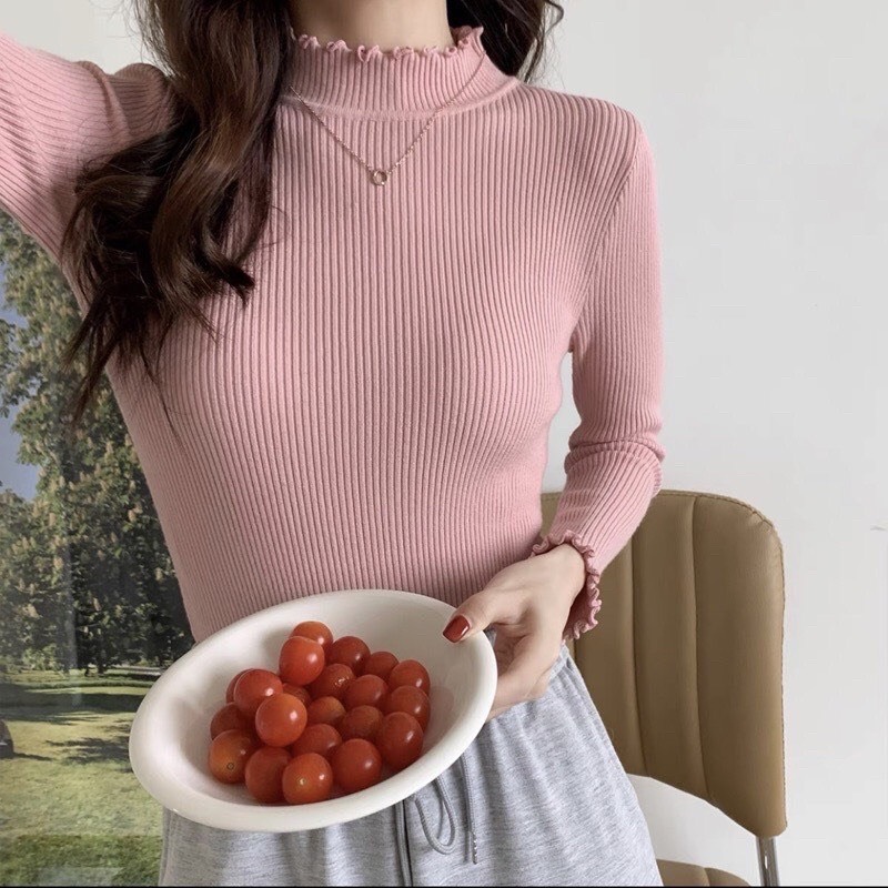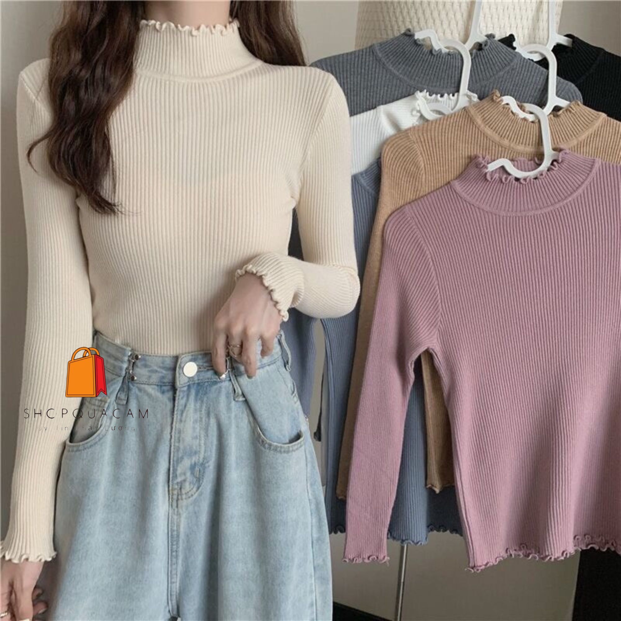 Áo Len, Áo Len Tăm Co Giãn Cổ 3p Sóng Viền Bèo Dáng Ôm Tay Dài Giữ Nhiệt Hàng Qccc Siêu Dễ Phối Đồ Hót 2024 Shopquacam