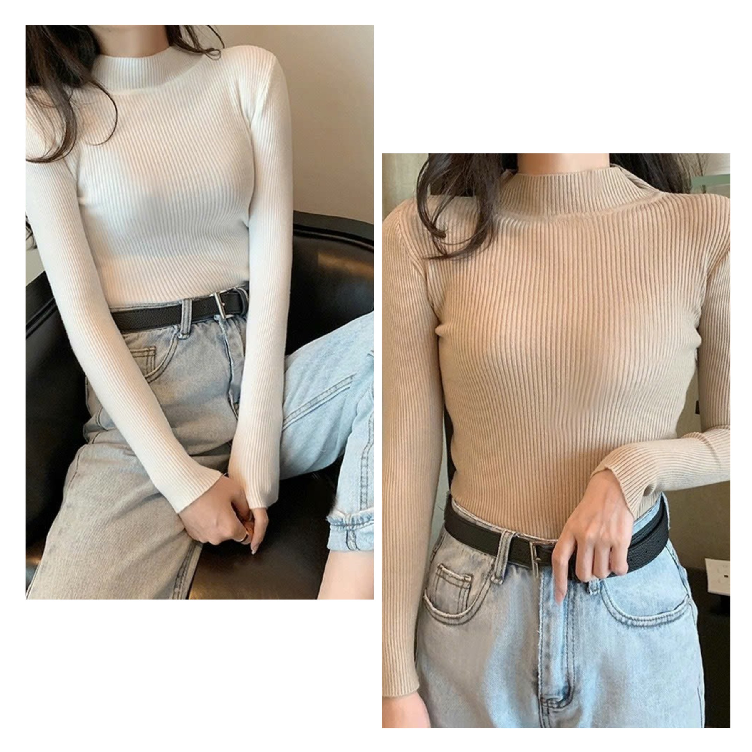 T837.Áo len cổ 3 phân kiểu len gân to dáng basic dễ mặc dễ phối đồ