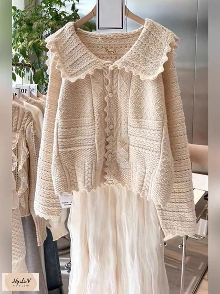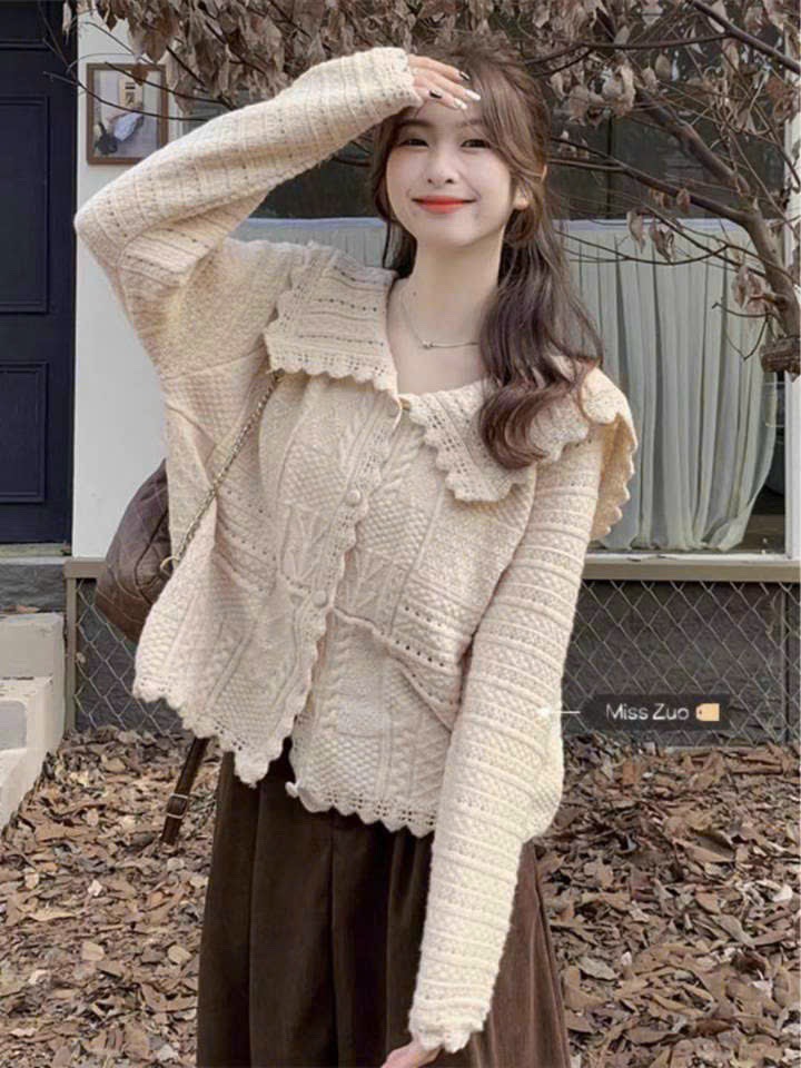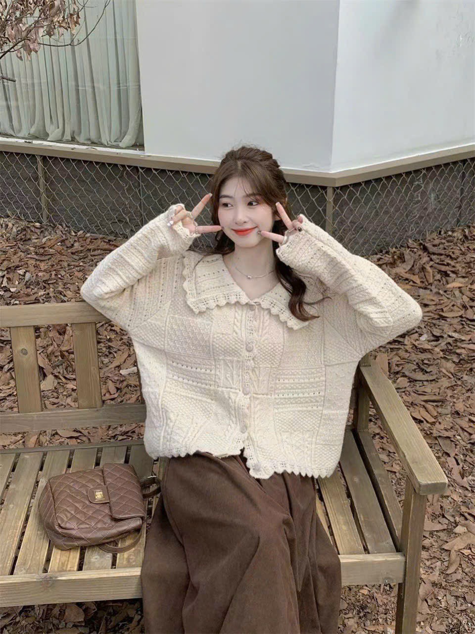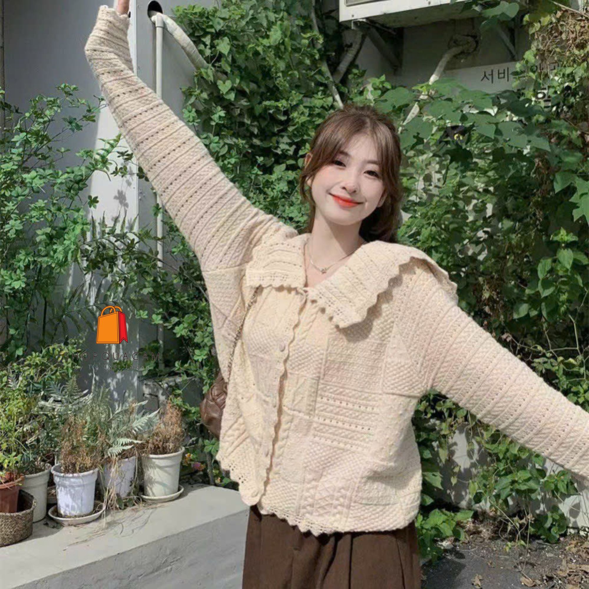 Áo Len Kiểu Tay Dài Dáng Lỡ Phối Họa Tiết Full Áo Siêu Xinh Kèm Cổ Bẻ Tiểu Thư Hàng Qccc Phù Hợp Mọi Lứa Tuổi Shopcam