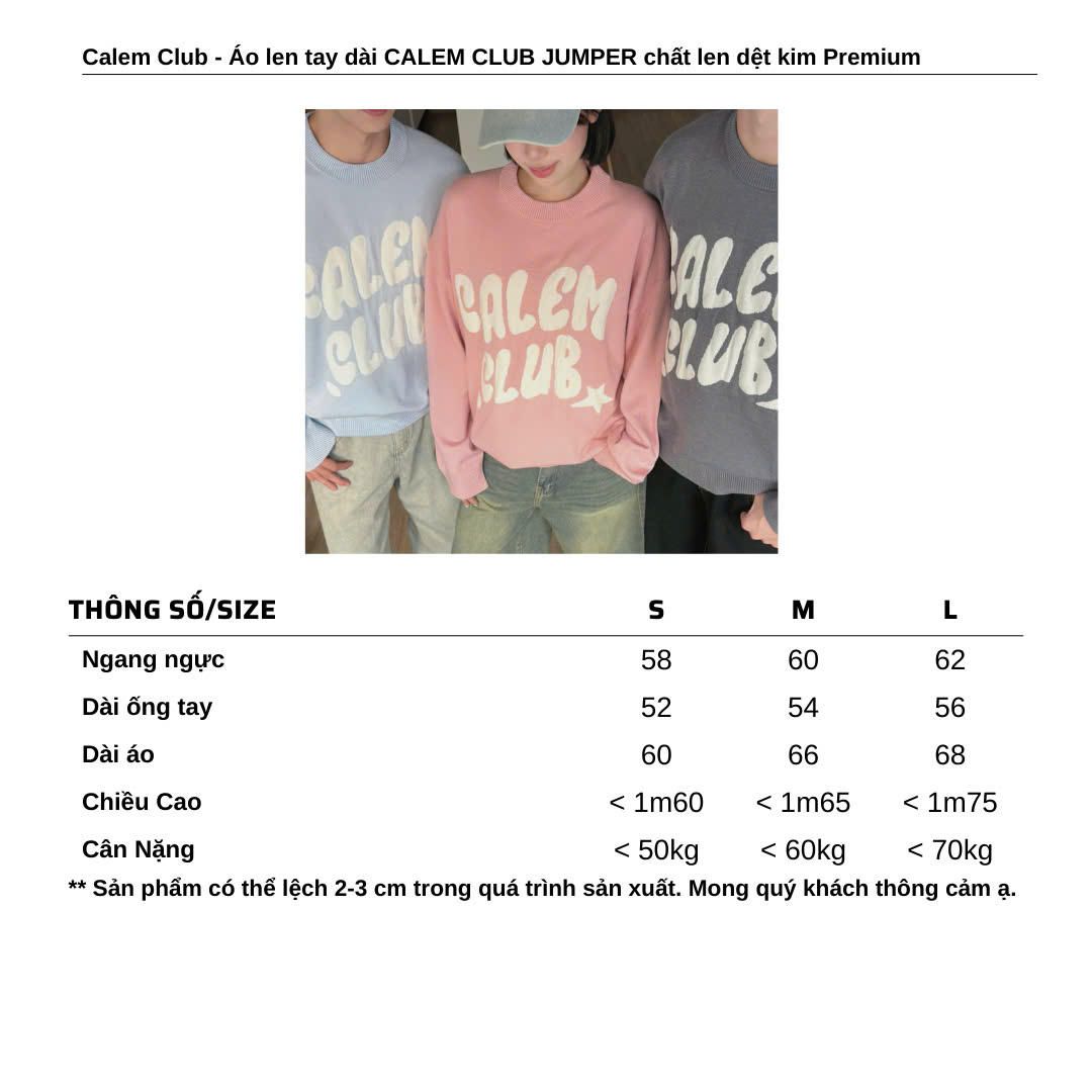 Áo len tay dài CALEM CLUB JUMPER chất len dệt kim Premium cổ tròn form rộng unisex nam nữ thu đông