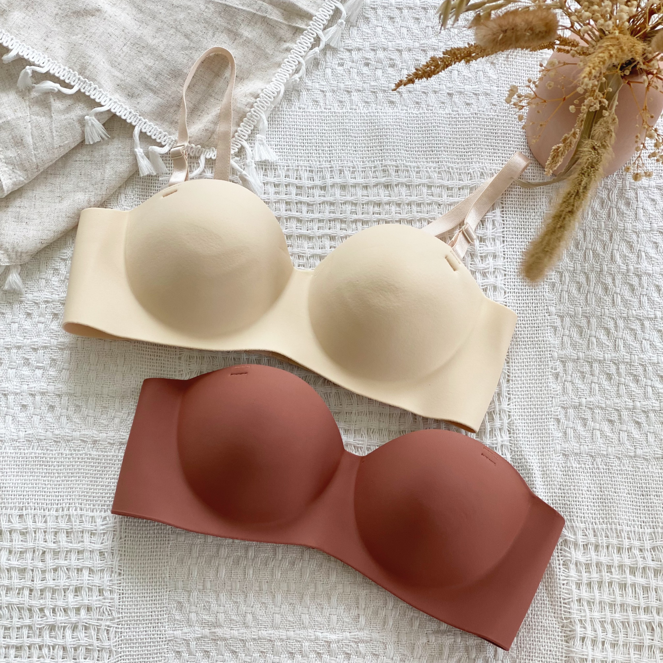 Tên sản phẩm: Áo lót nữ đúc su không gọng Áo ngực cúp ngang mút bàn tay nâng ngực