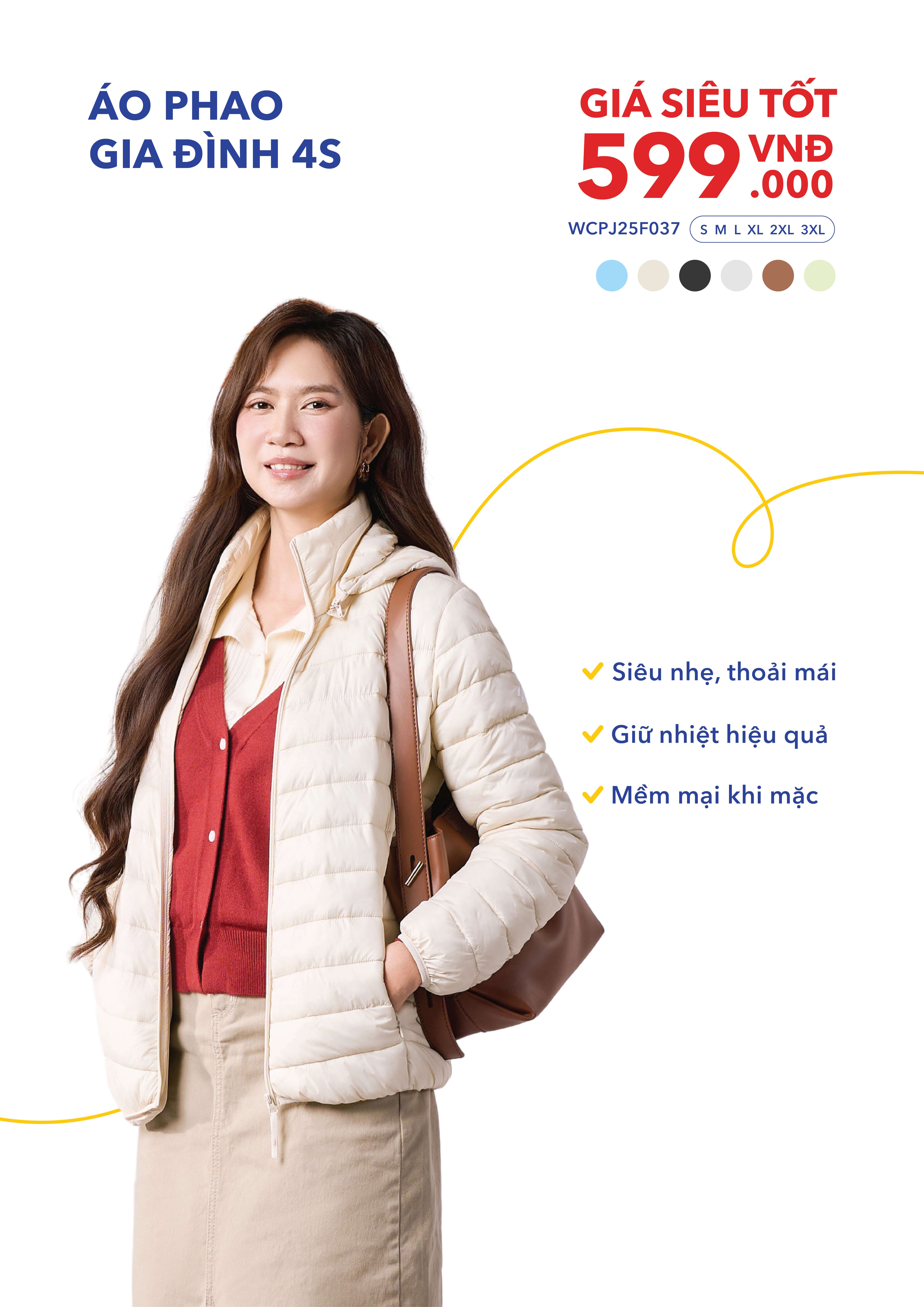 Áo khoác phao nữ 4S YODY siêu nhẹ có mũ form ôm nhẹ nhàng giữ ấm tốt cản bụi WCPJ25F037