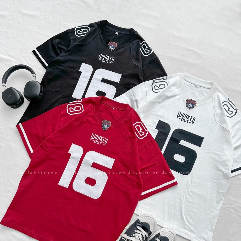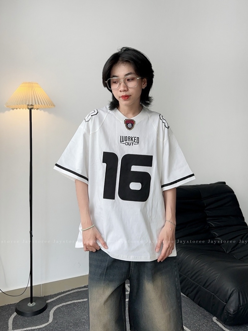 Áo phông tay lỡ JERSEY 16 đắp nổi số phong cách UNISEX nam nữ - áo thun cổ tròn tay lỡ form rộng 🖤