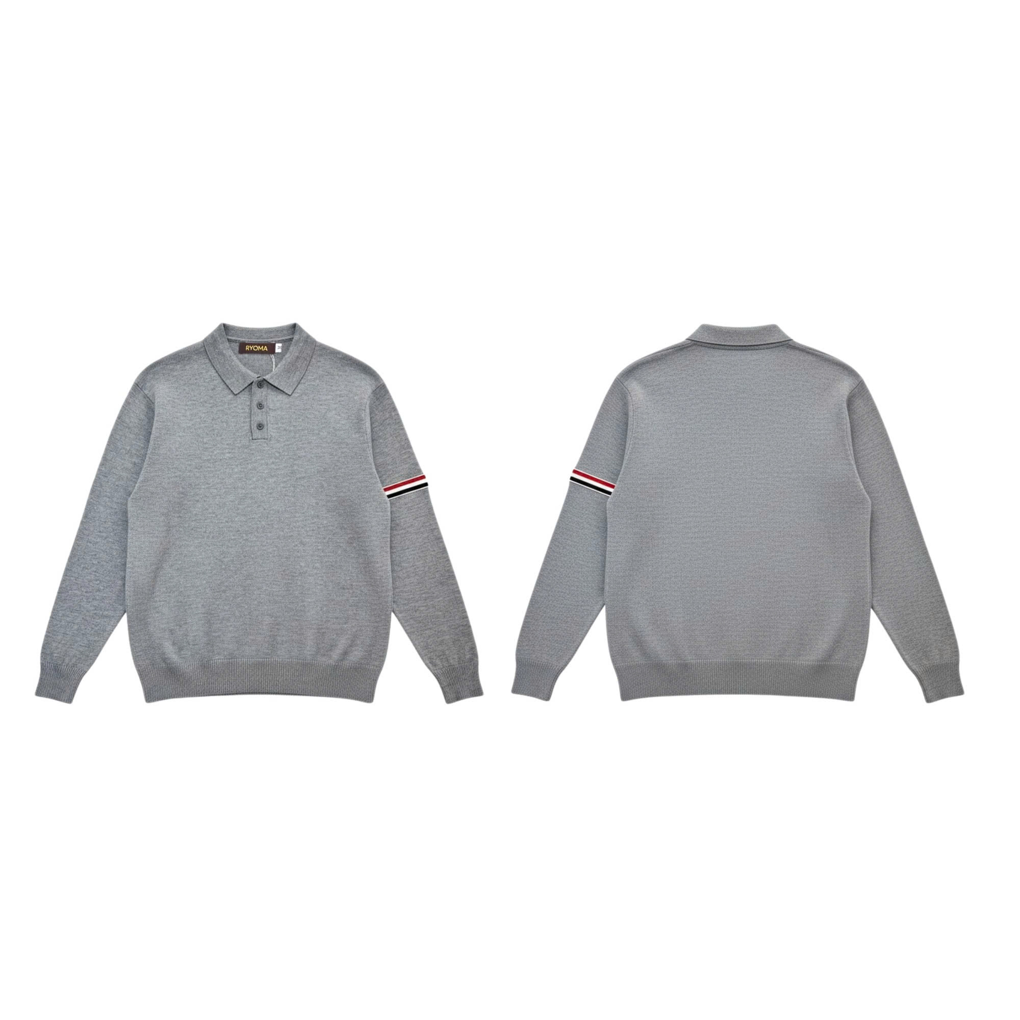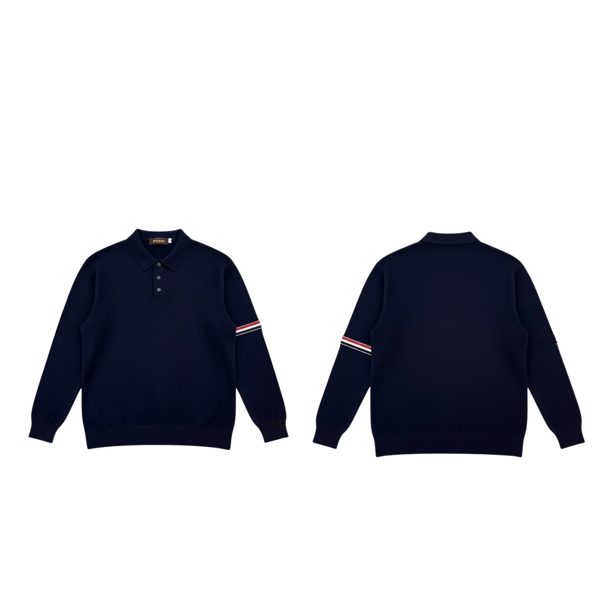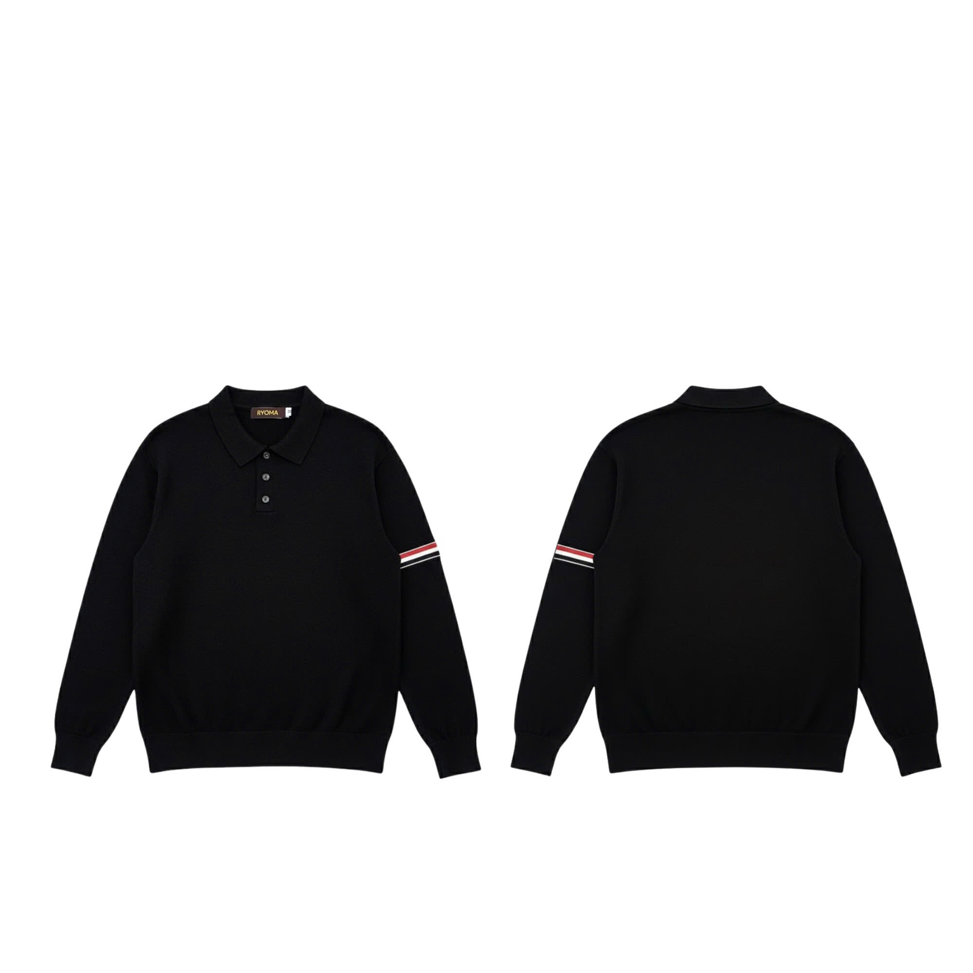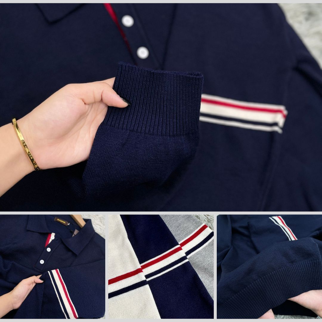 Áo Polo dệt kim RYOMA dài tay cao cấp, chất len lông thỏ mềm mại kiểu dáng classic kẻ tay sang trọng NLH-10