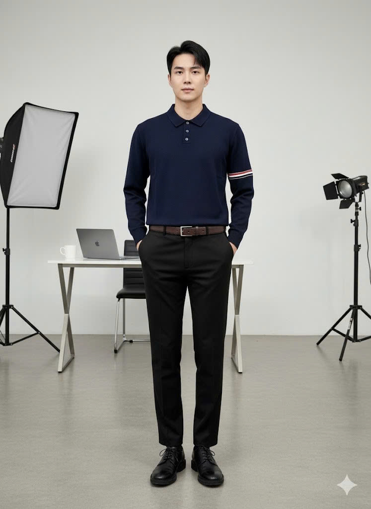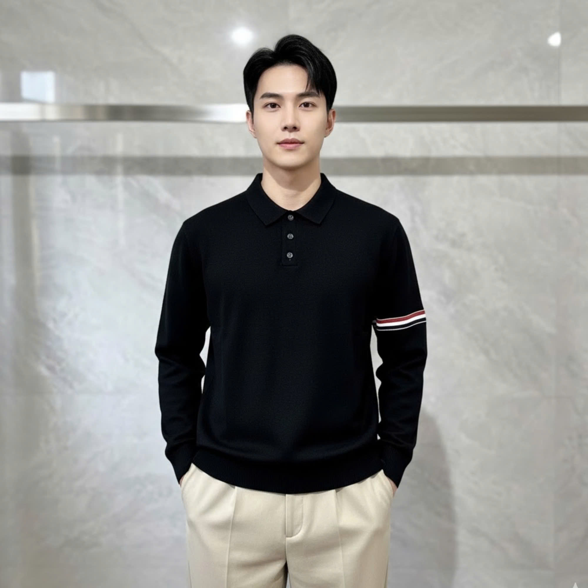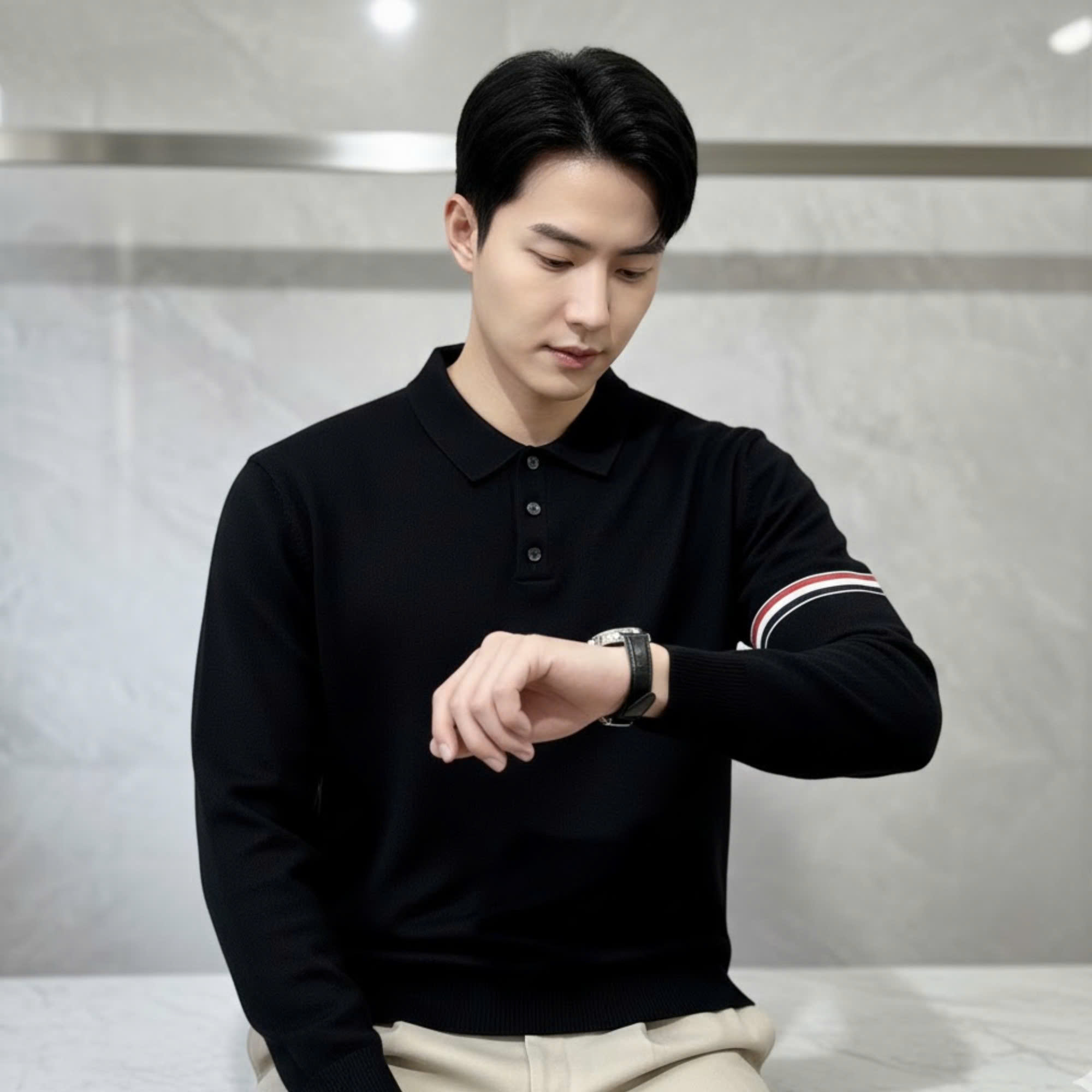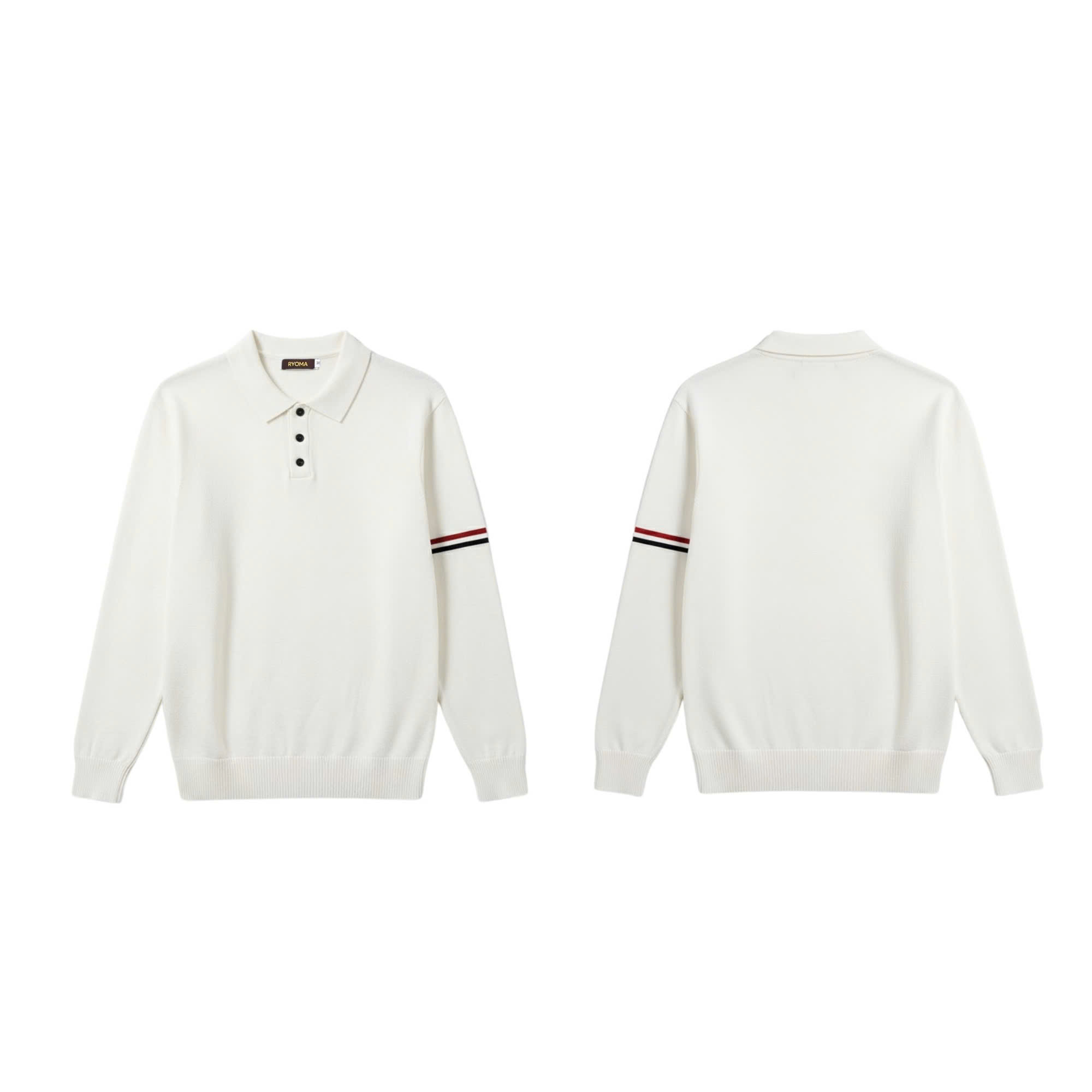 Áo Polo dệt kim RYOMA dài tay cao cấp, chất len lông thỏ mềm mại kiểu dáng classic kẻ tay sang trọng NLH-10