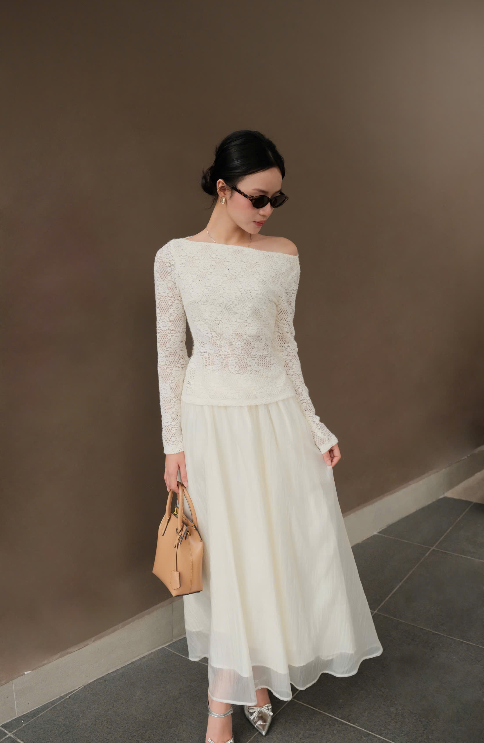 Mặc được 2 kiểu:Cổ thuyền thanh lịchLệch vai quyến rũ, khoe xương quai xanh cực xinh