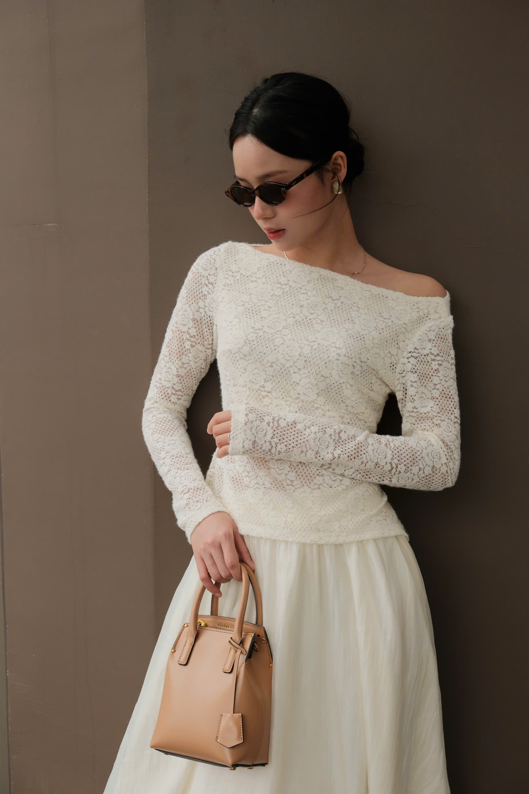 Áo ren lông thỏ nữ mặc lệch vai, co dãn, phong cách, thanh lịch Miolady
