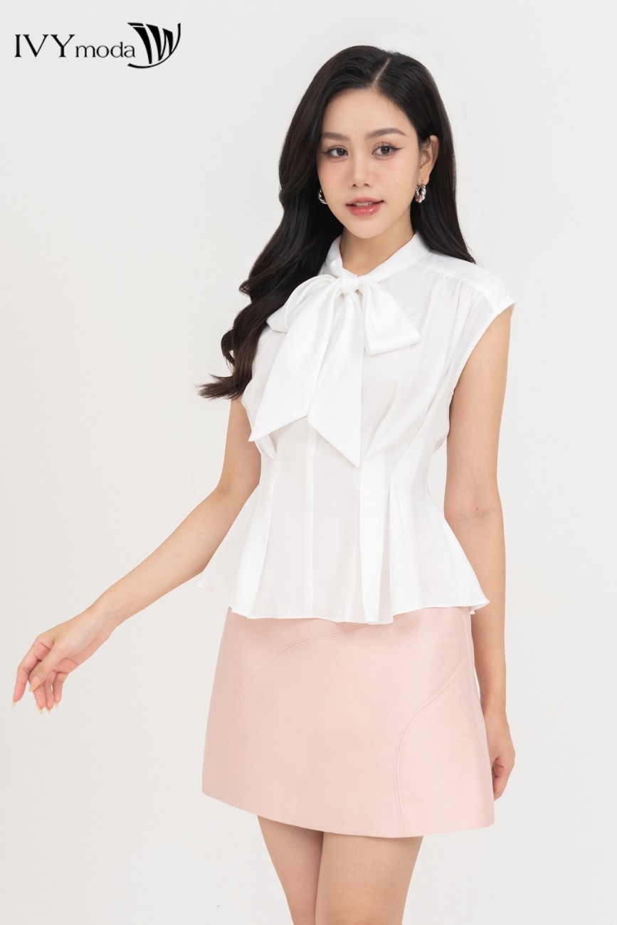 Áo sơ mi peplum cổ nơ nữ IVY moda MS 16M8717