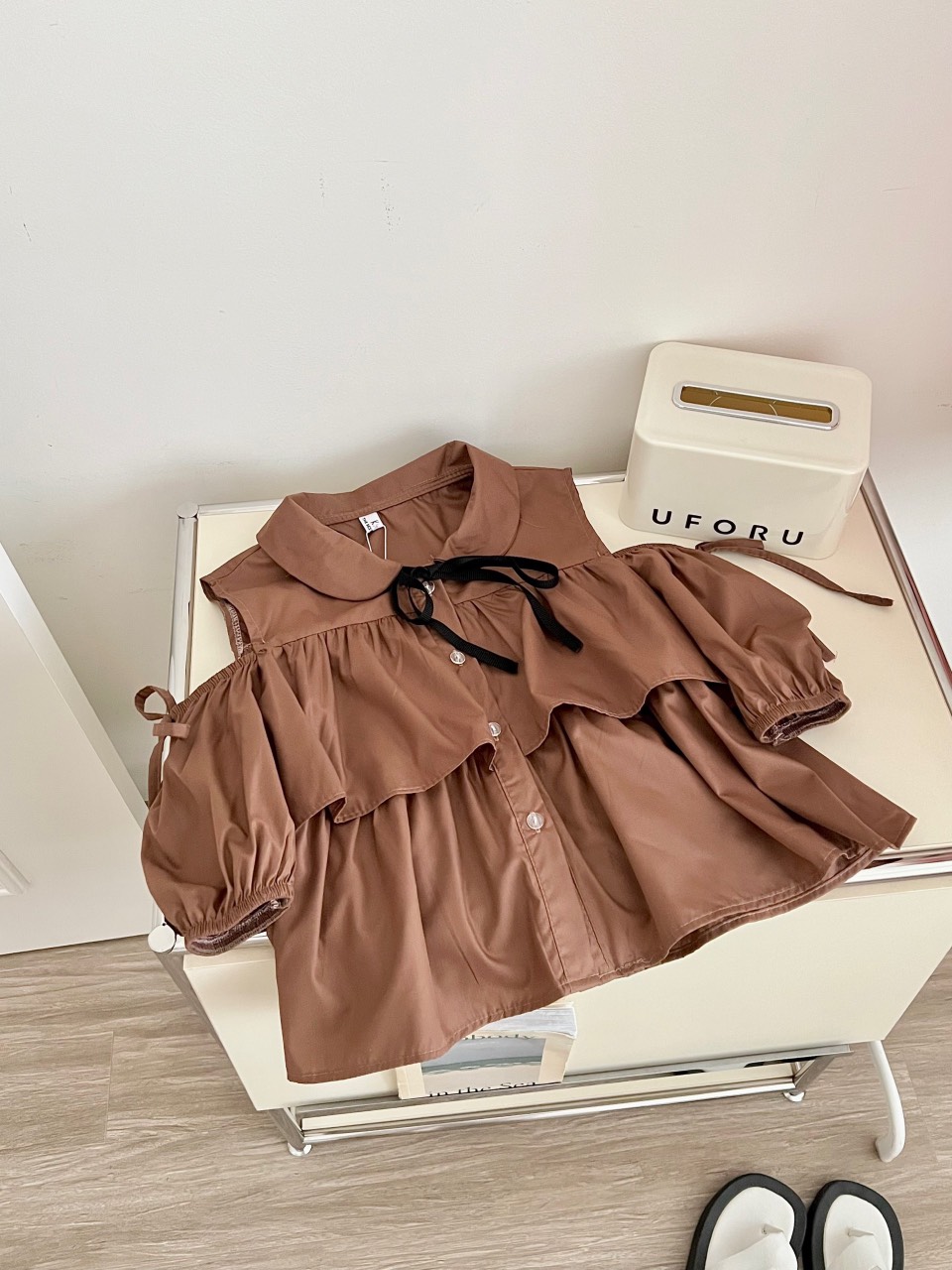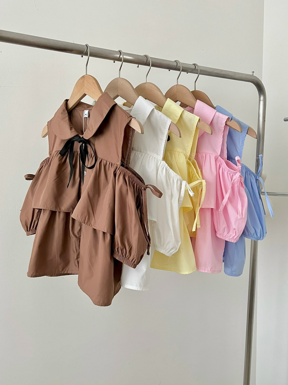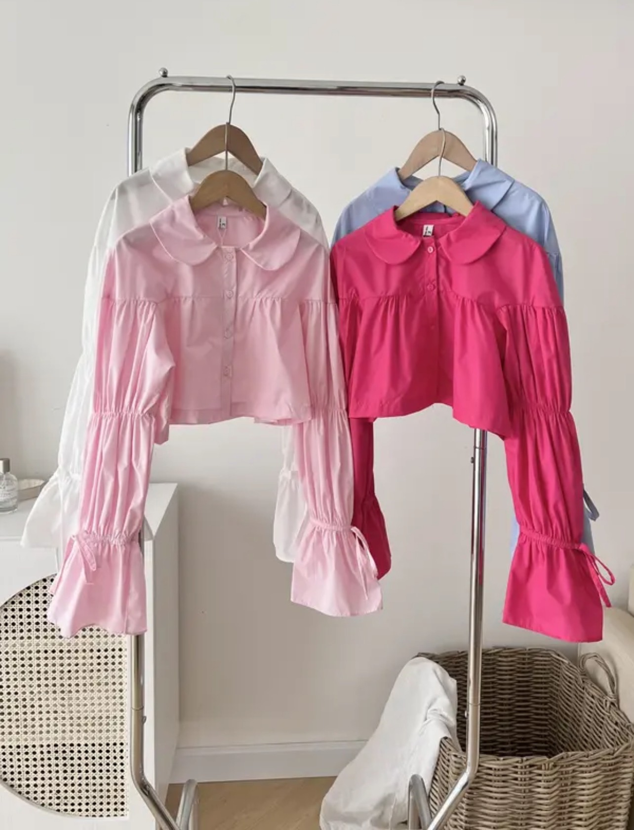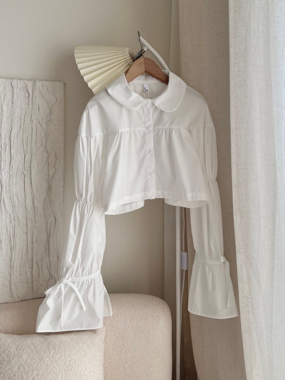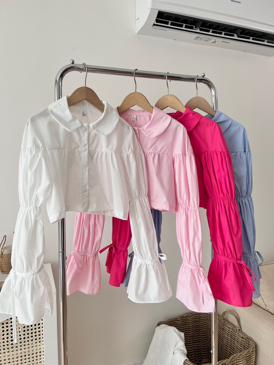 Sản phẩm: Áo sơ mi tay bồng loe dáng croptop CỔ SEN tiểu thư 4 MÀU