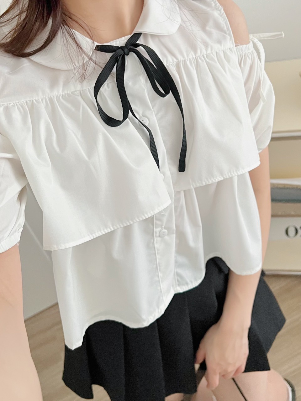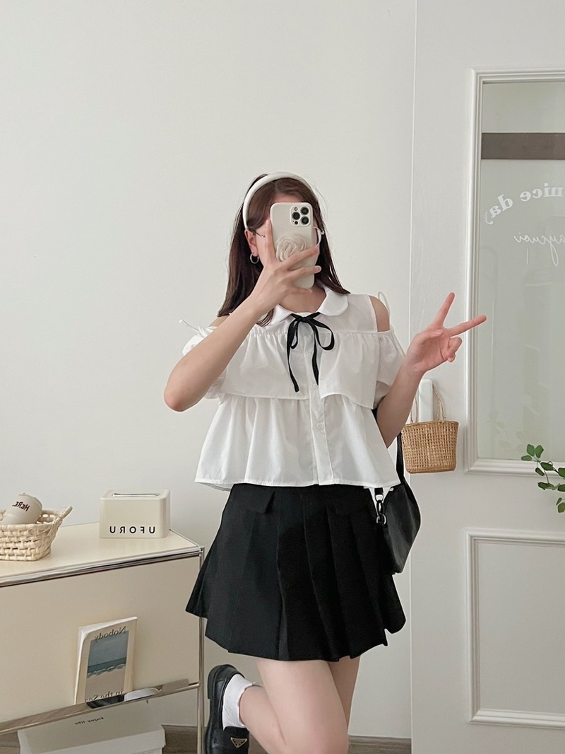 Lưu ý: màu trắng hơi mỏng 1 chút nên các bạn mặc kèm áo quây hoặc bra tone trắng/nude để tránh bị lộ ạ.