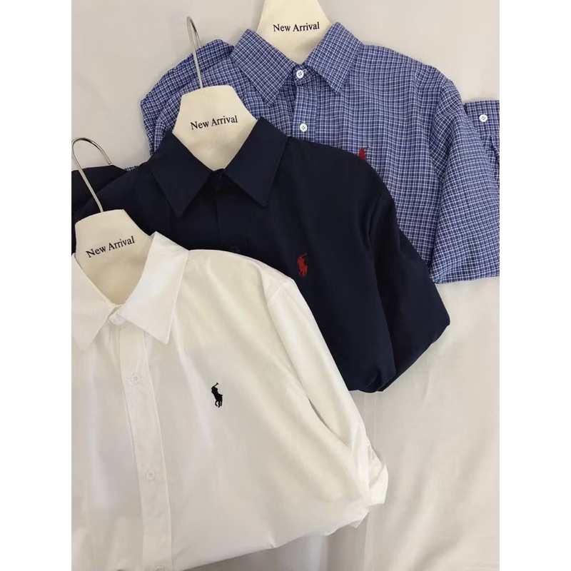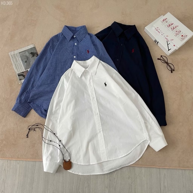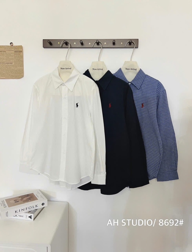 Áo sơ mi tay dài thêu logo ngựa basic dễ phối đồ 3 màu