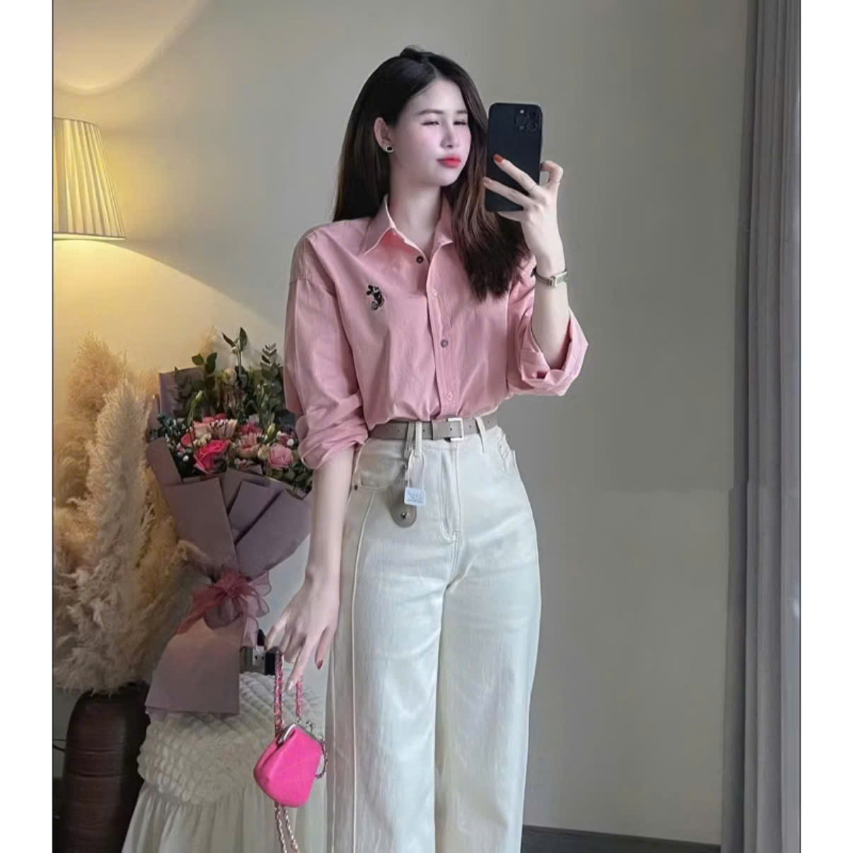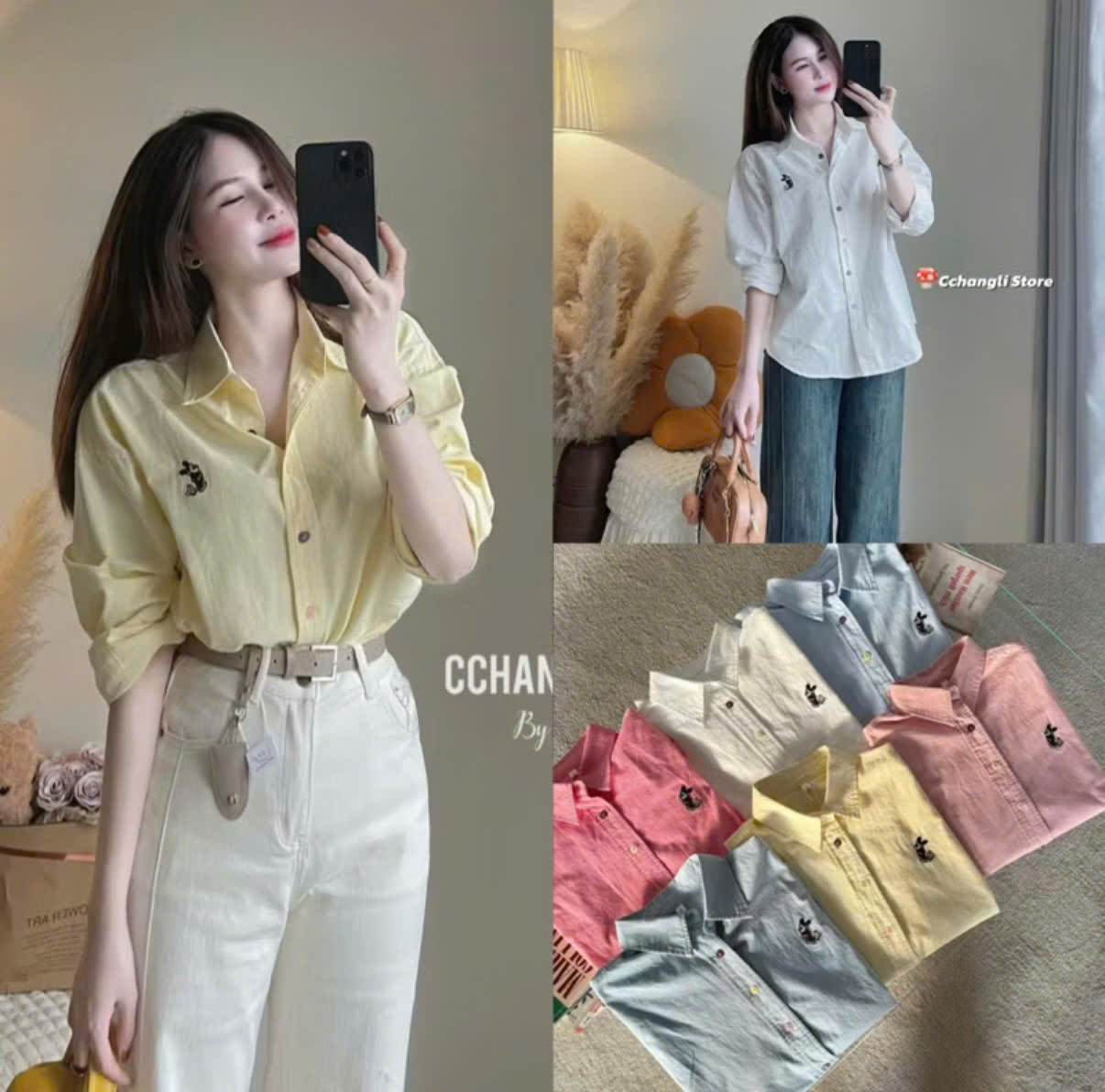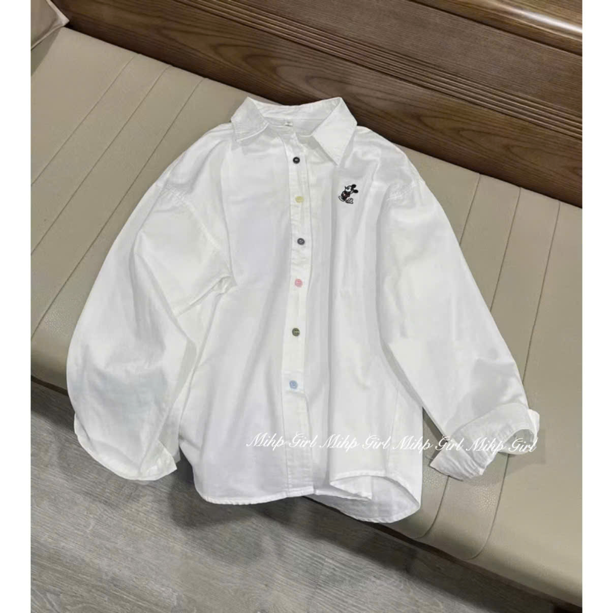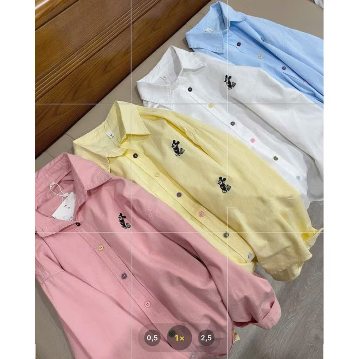 Áo Sơmi Thô Thêu MICKEY Cúc Sắc Màu hàng QC-dành cho Nữ