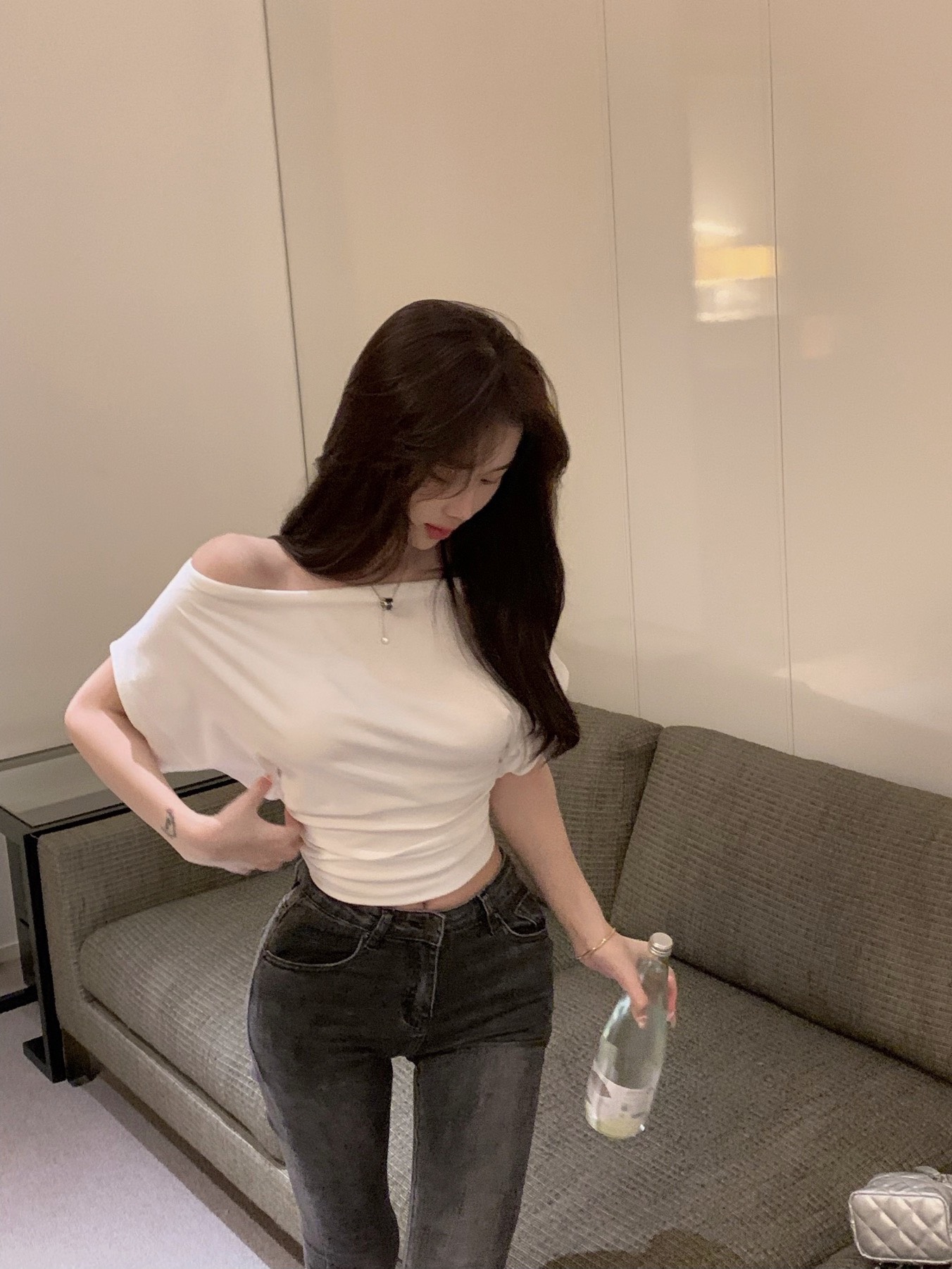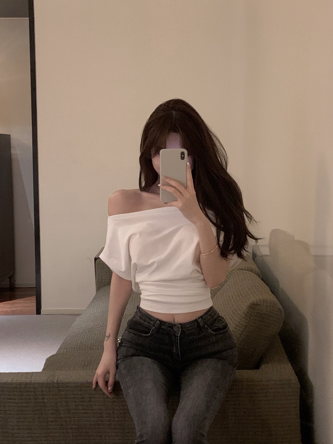 Áo thun croptop áo thun trễ vai áo croptop trễ vai chất thun tăm co giãn A185 PANOSI