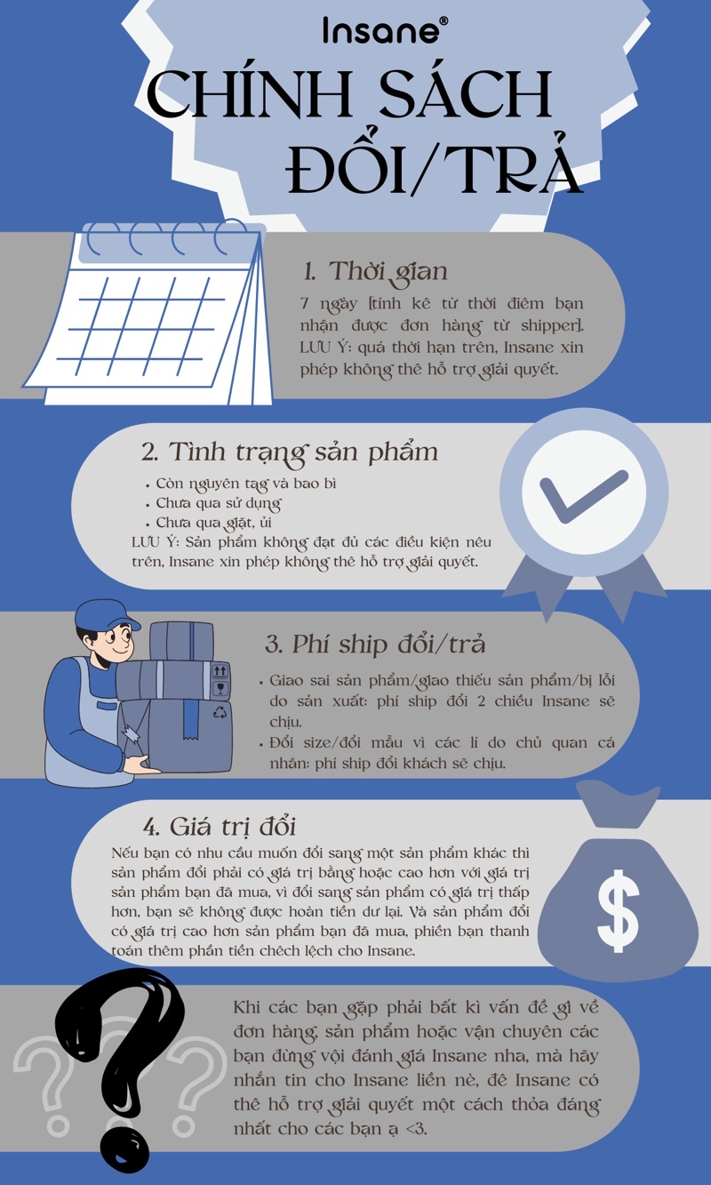 Về chất lượng và độ bền của sản phẩm đã được Insane đảm bảo, tuy nhiên, để có thể sử dụng sản phẩm một cách lâu dài nhất có thể, tuỳ thuộc vào rất nhiều cách bảo quản và gìn giữ của bạn. Vì vậy, Insane xin gợi ý một số cách bảo quản sản phẩm như sau: