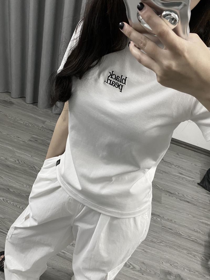 Áo Thun Nữ Baby Tee JUSTDUN B1 – Thêu “BLACK PEARL”, Chất Cotton Mềm Mịn, Co Giãn Nhẹ, Form Gọn Trẻ Trung
