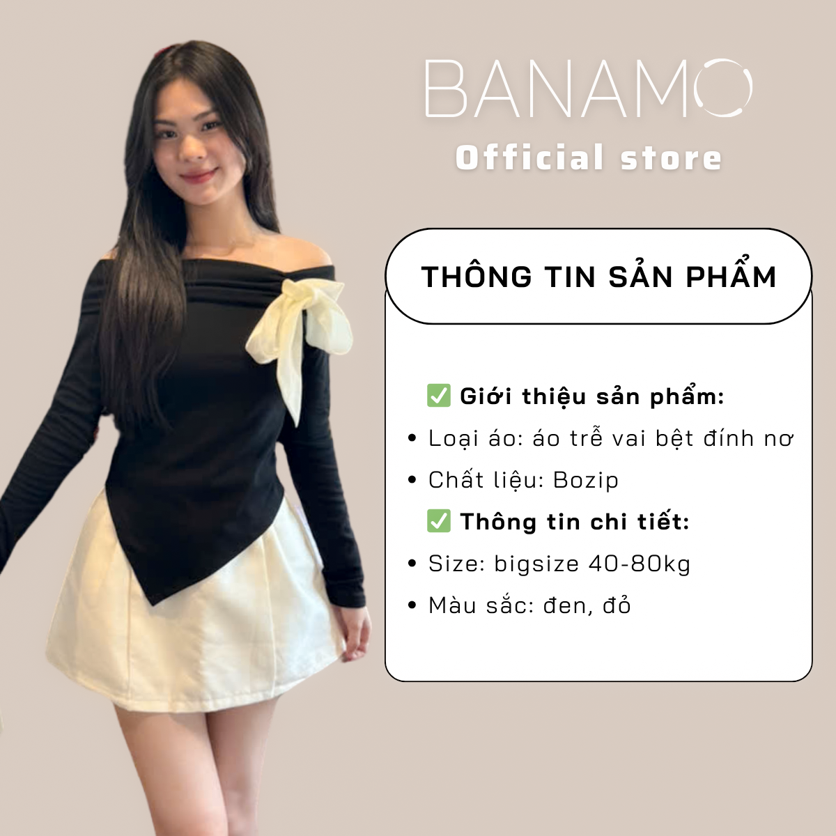 Áo Thun Nữ BIGSIZE Banamo Fashion áo thun dài tay trễ vai phối nơ co giãn thoải mái 3101