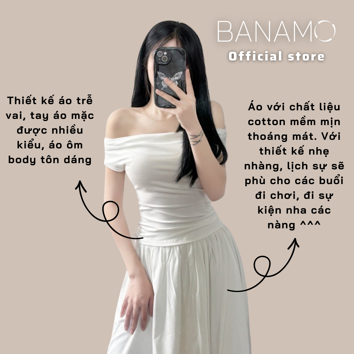 Áo thun nữ BIGSIZE Banamo Fashion áo trễ vai cộc tay chất liệu cotton co giãn ôm body 3008