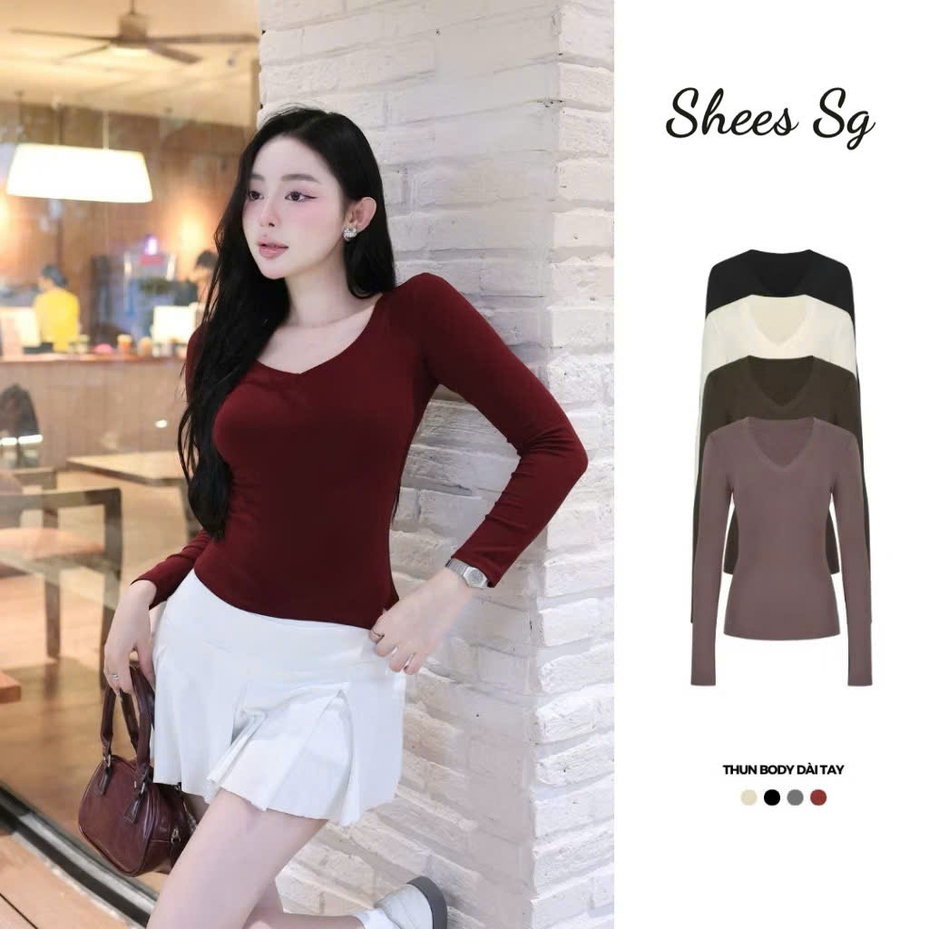 Áo thun nữ dài tay cổ Tim ôm body - Áo thun thu đông chất tăm lạnh SHEES M1022