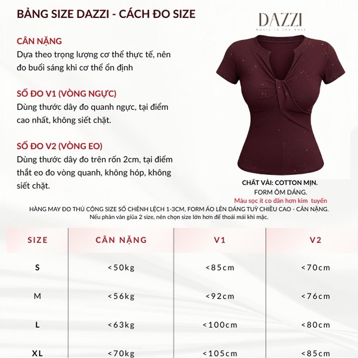 Áo thun nữ hoạ tiết kẻ sọc và kim tuyến cổ V xoắn vạt bầu vải cotton mịn DAZZI Women A059