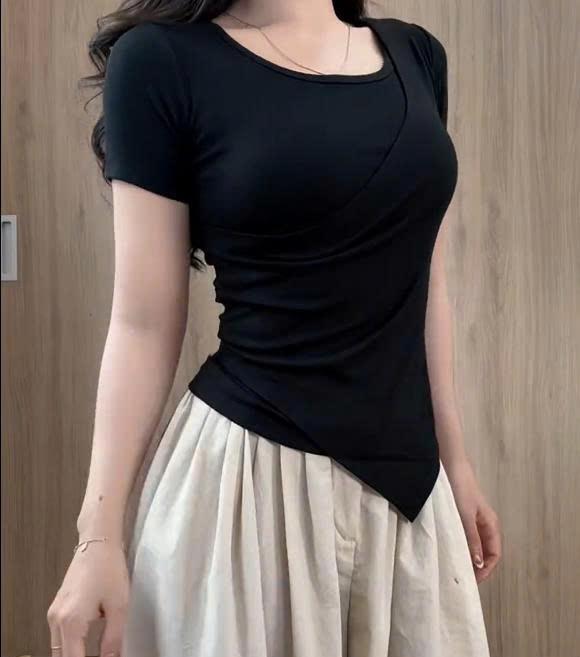 Áo thun nữ phối viền thiết kế dây rời thắt eo vạt xẻ tà vải tăm hàn ôm body thiết kế trẻ trung năng động cho chị em đi chơi