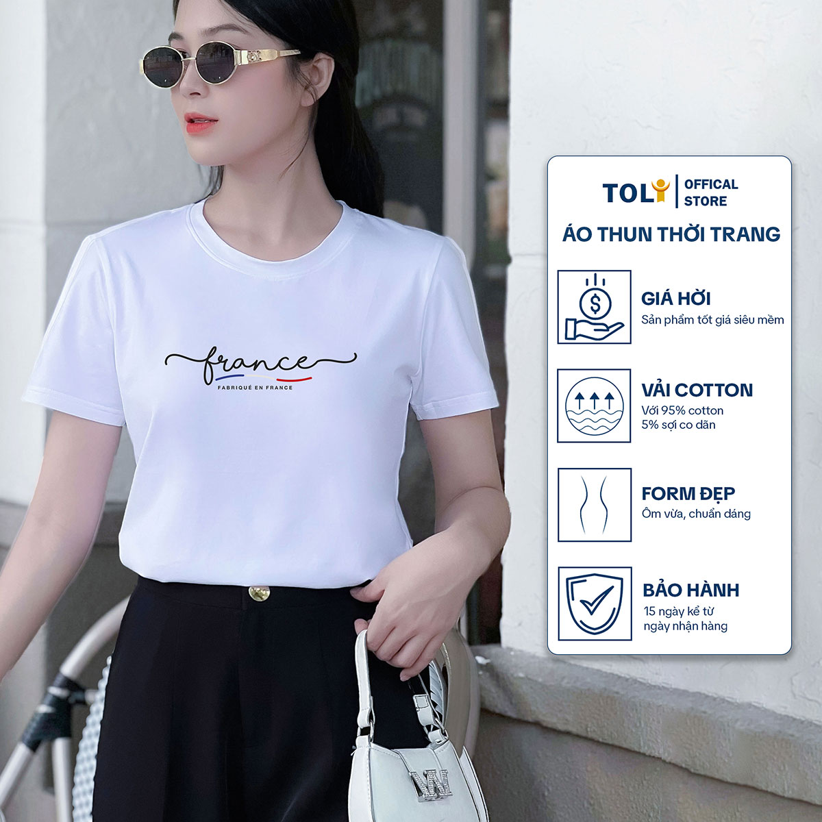 Áo thun nữ TOLI cổ tròn tay ngắn, In chữ France, Form vừa dáng, vải cotton 4 chiều - PSB M02