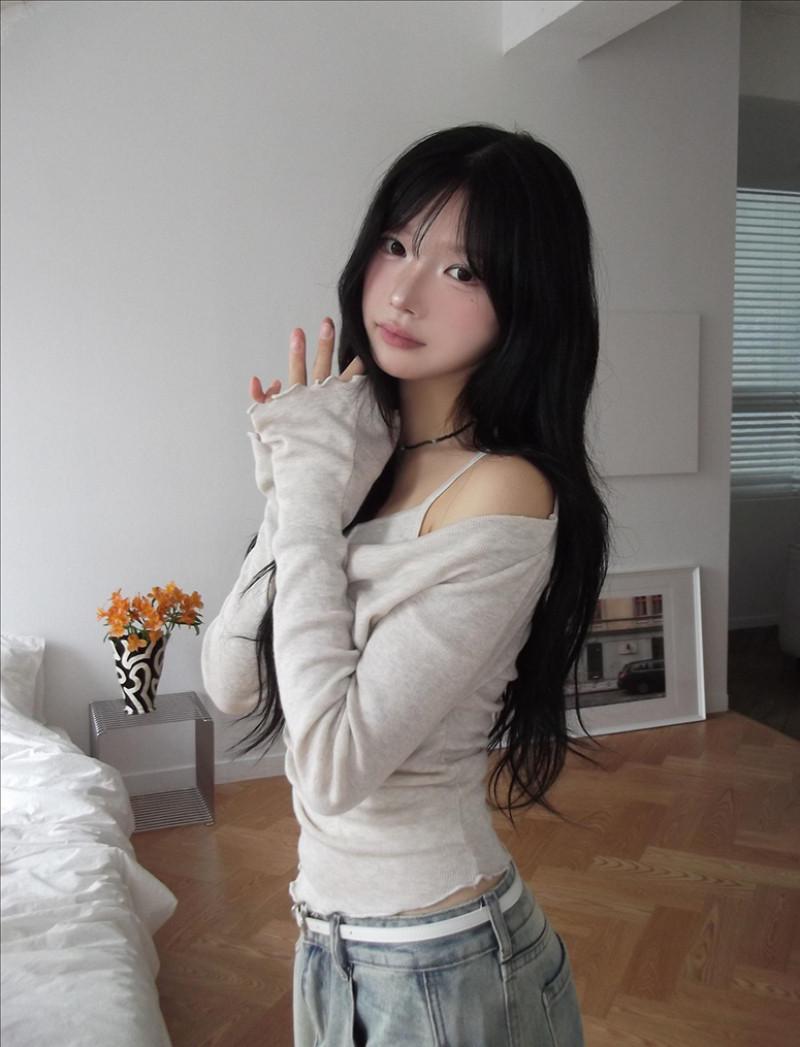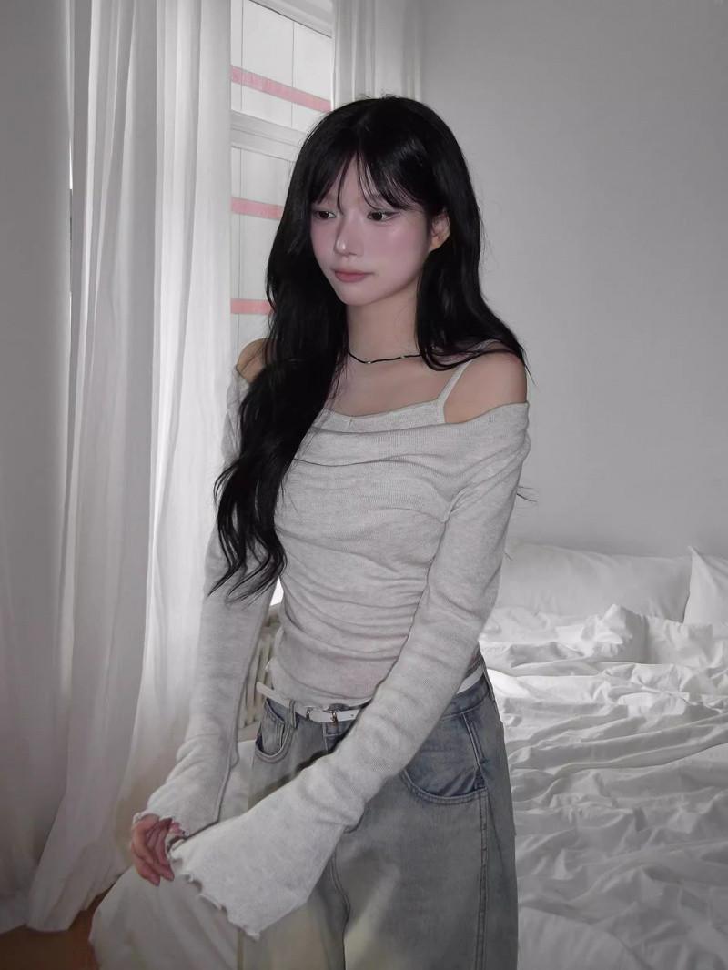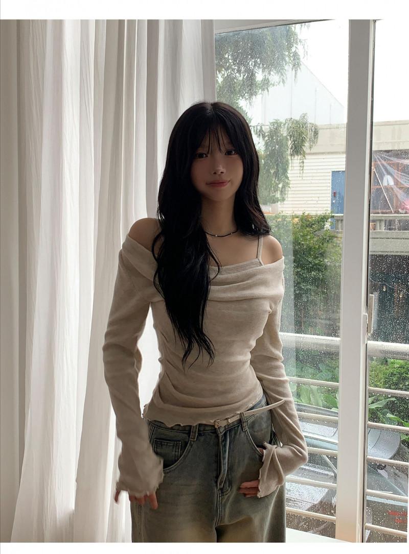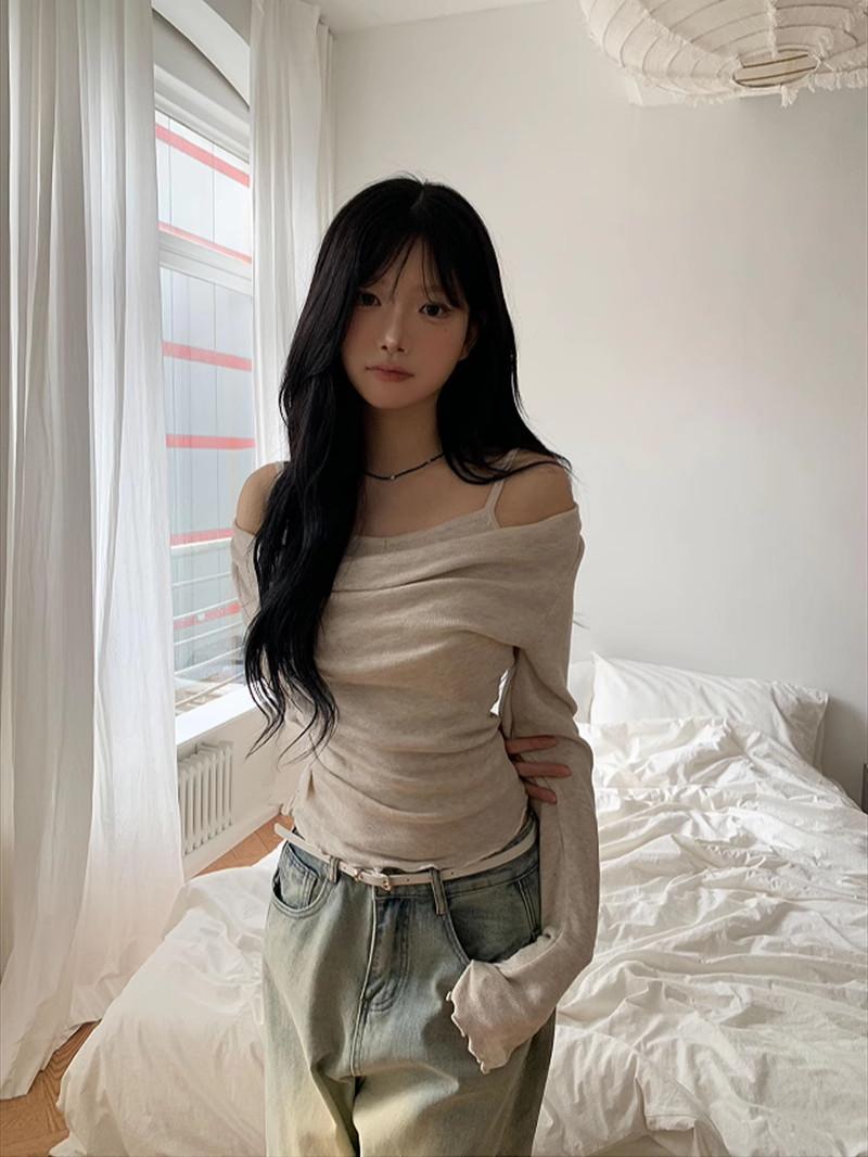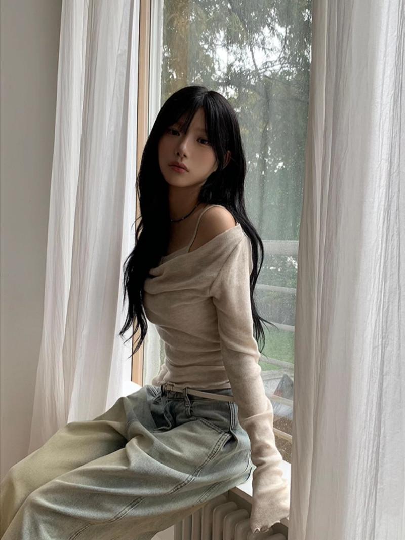 Áo Thun Nữ Trễ Vai Khâu Dài Tay, Hàng Mới Về Mùa Thu, 251016