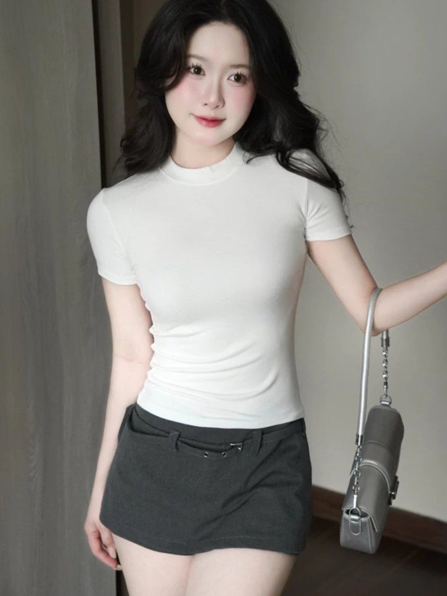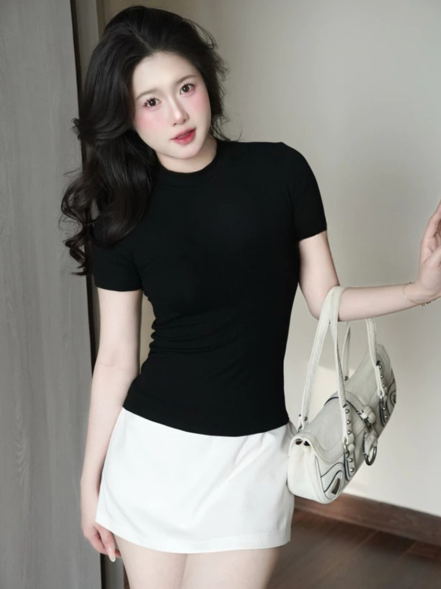 Áo Thun Nữ Cổ Tròn Ôm Body – Vải Cotton Cao Cấp, Co Giãn Tốt, Tôn Dáng Chuẩn, Vải Dày