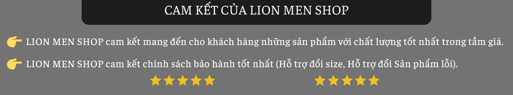 - Sự hài lòng của khách hàng là vô cùng quan trọng cho sự phát triển của LION MEN SHOP, chúng tôi luôn luôn lắng nghe và mọi thông tin phản hồi của bạn là vô cùng quan trọng đối với chúng tôi.
