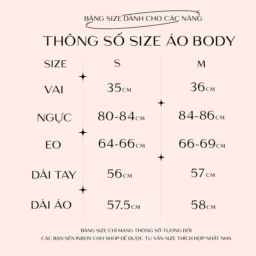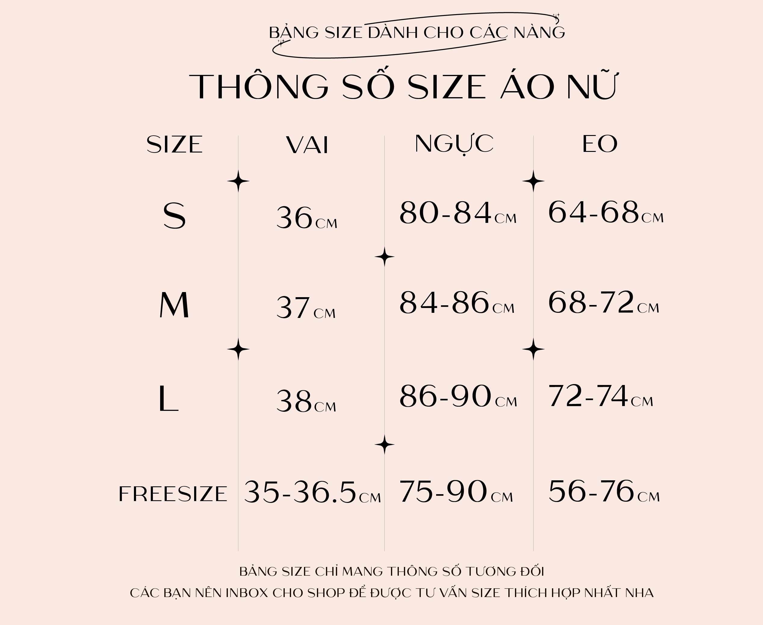 Bảng size chỉ mang thông số tương đối, các nàng nên inbox shop trước để được tư vấn size chuẩn hơn nha.