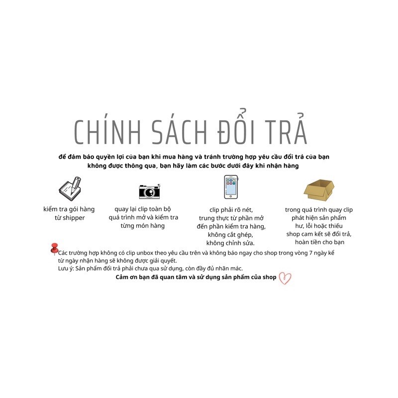 - Quy trình sản xuất công nghiệp nếu sai xót thông số trong mức 5% hoặc nếu có vấn đề phát sinh rất mong được các bạn nhắn tin cho shop để được shop hỗ trợ và giải quyết.