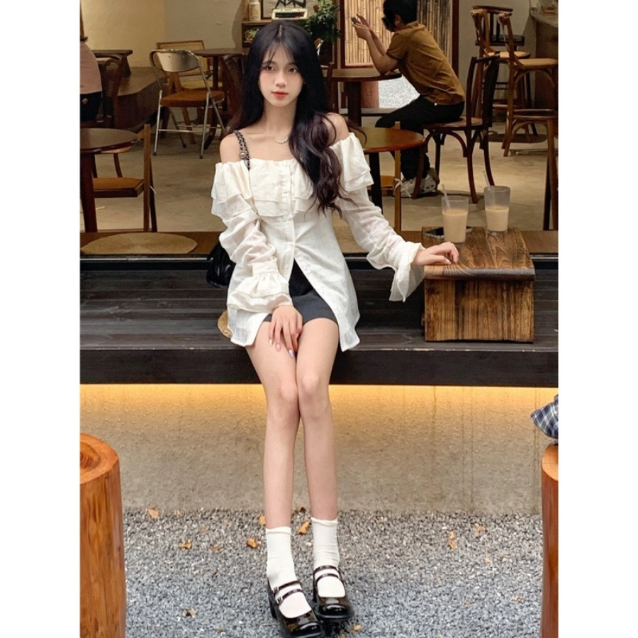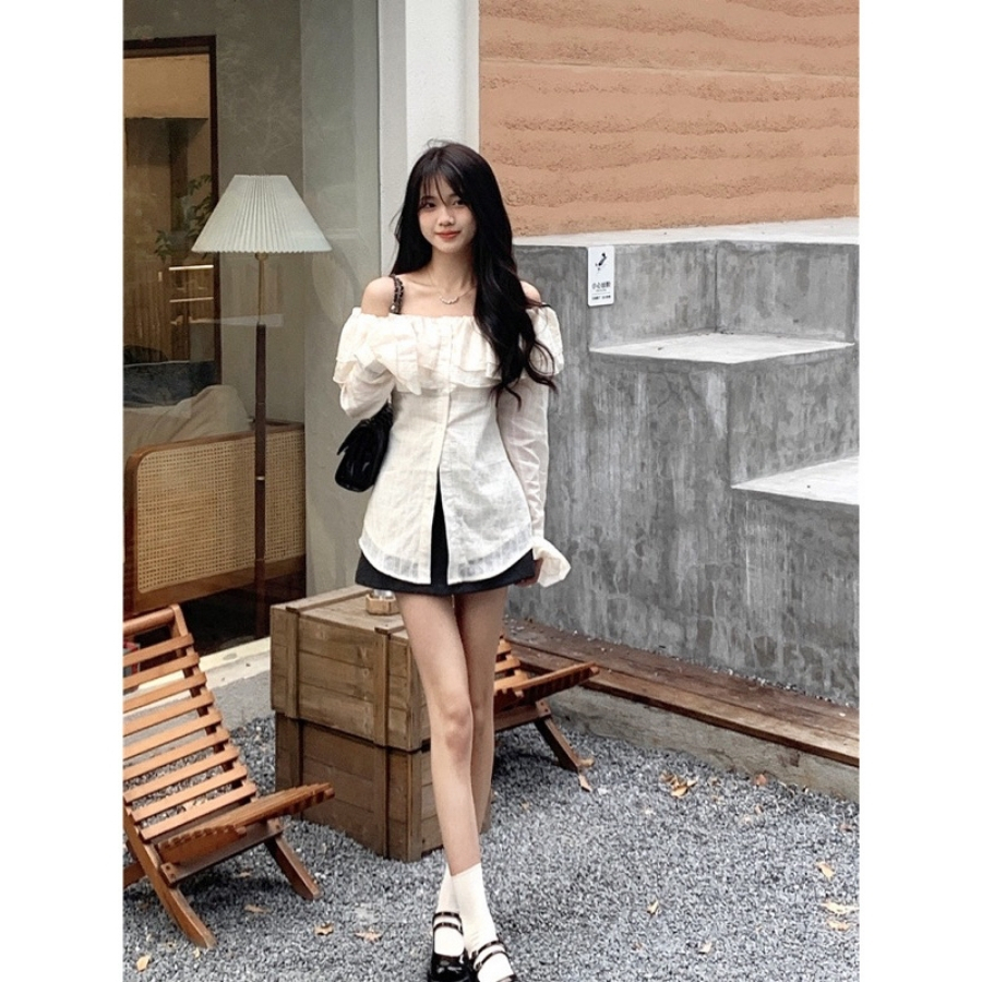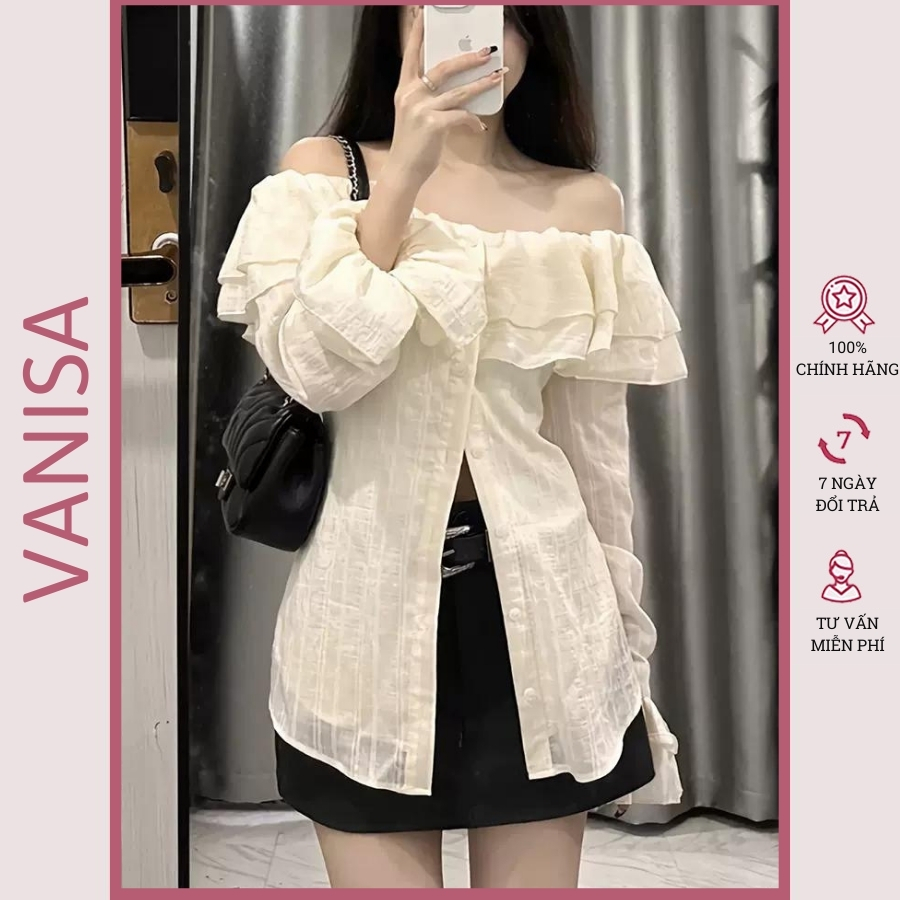 Áo trễ vai tay dài bẹt kiểu ôm bồng xẻ tà chất voan xốp trắng xinh VANISA CT047