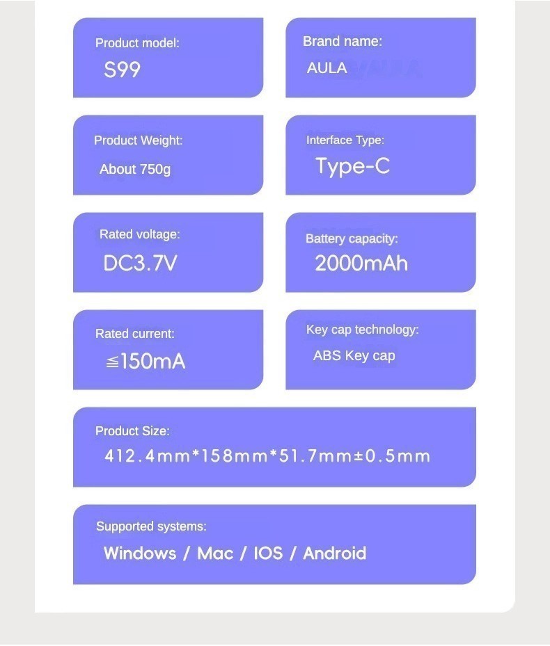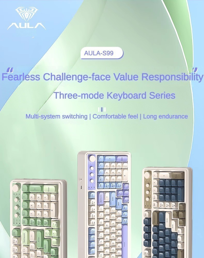 Aula S99 RGB Wireless 2.4G Bluetooth Bàn phím ba chế độ có thể sạc lại cảm giác Tay cầm Máy tính xách tay Văn phòng Trò chơi thể thao điện tử