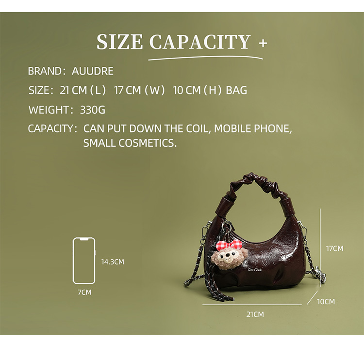 Auudre Premium Retro Xếp Ly Túi Xách Túi Xích Đi Lại Túi Đeo Ngang