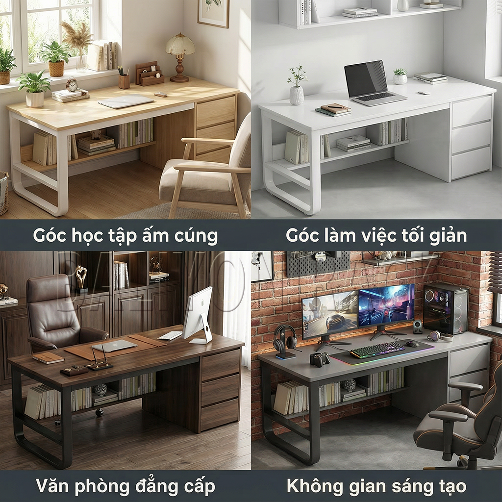 🔹 Thiết kế tích hợp: Bàn làm việc + tủ đựng, tiết kiệm không gian.